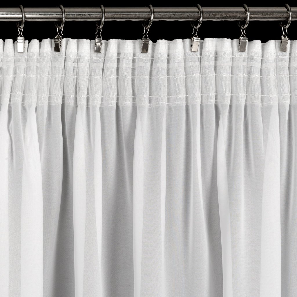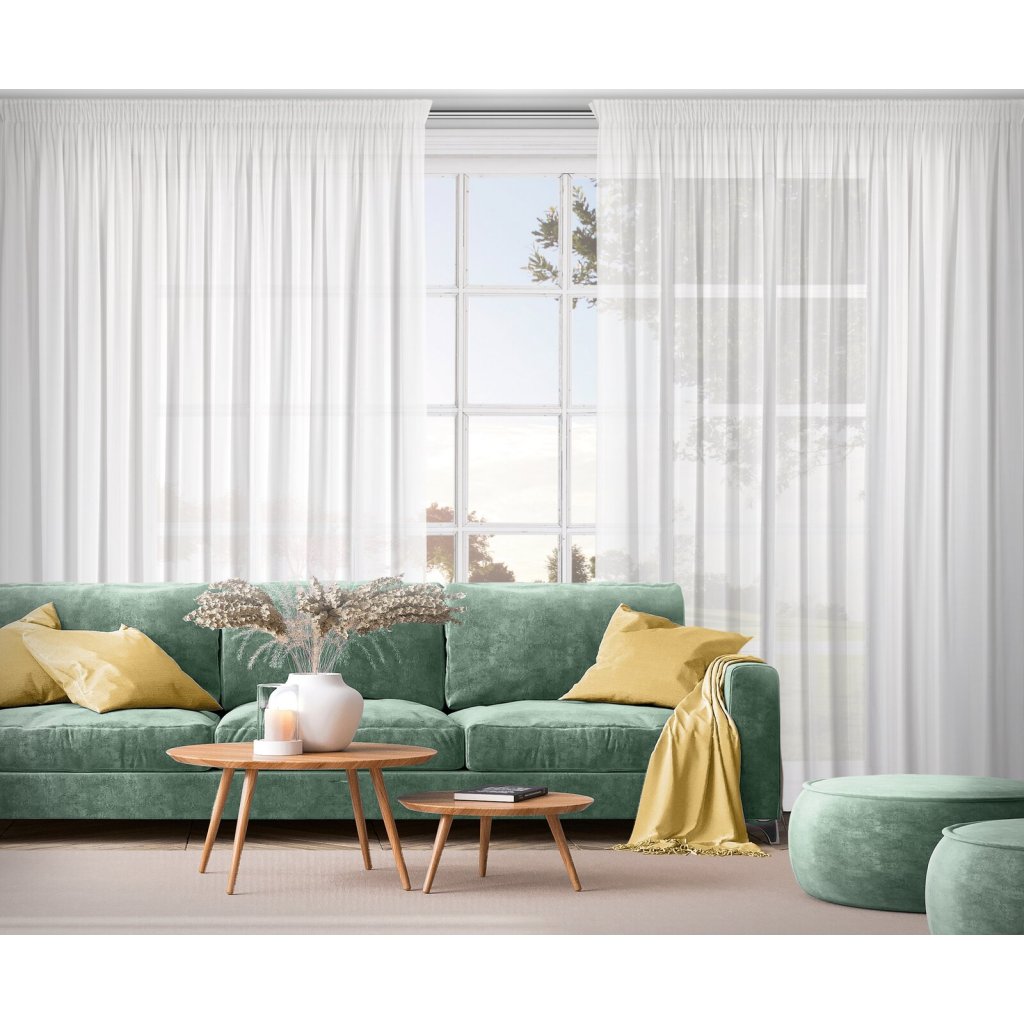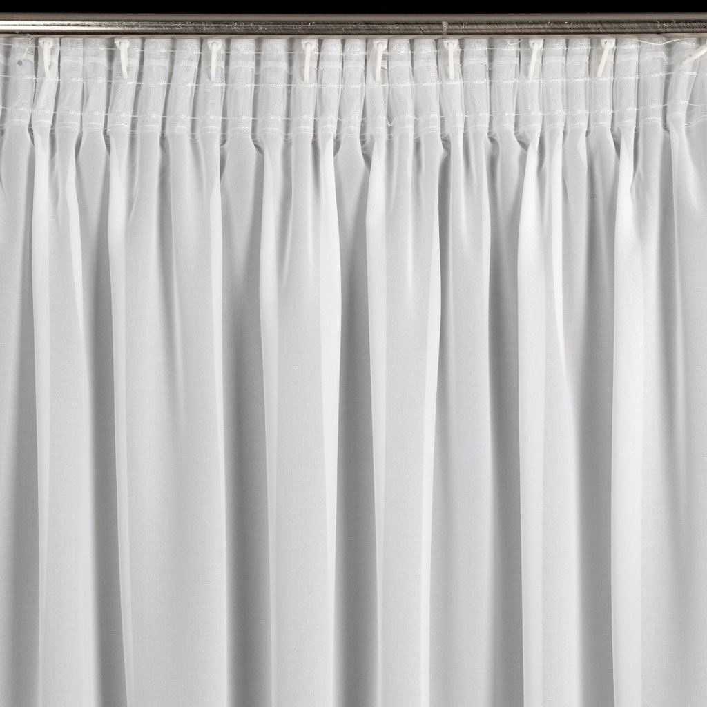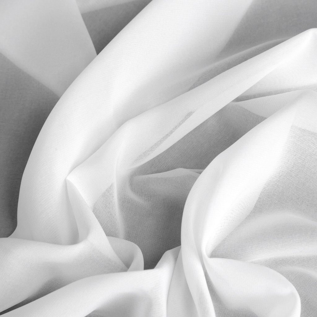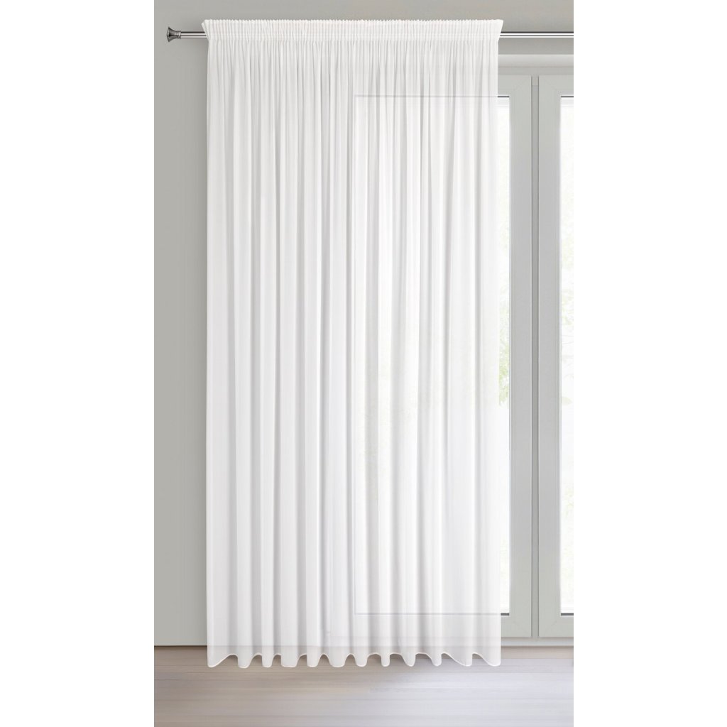 Bílá záclona bez vzoru z hladké šifonové látky, šířka: 300 cm, délka: 270 cm, hmotnost: 60 GSM, barva: bílá, složení: 100% polyester.Doplňkové parametry