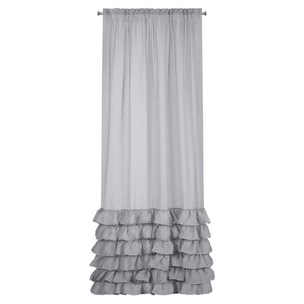 Hladká záclona zdobená volány s tunelovou páskou. Šířka: 140 cm, délka: 250 cm, barva: ocelová, hmotnost: 80 GSM, složení: 100 % polyesterDoplňkové parametry