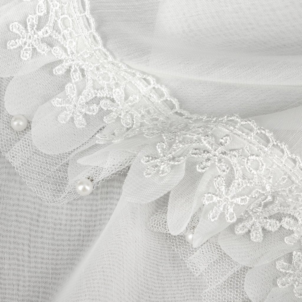 Záclona zdobená krajkou, šířka: 300 cm, délka: 150 cm, barva: bílá, složení: 100% polyester.Doplňkové parametry