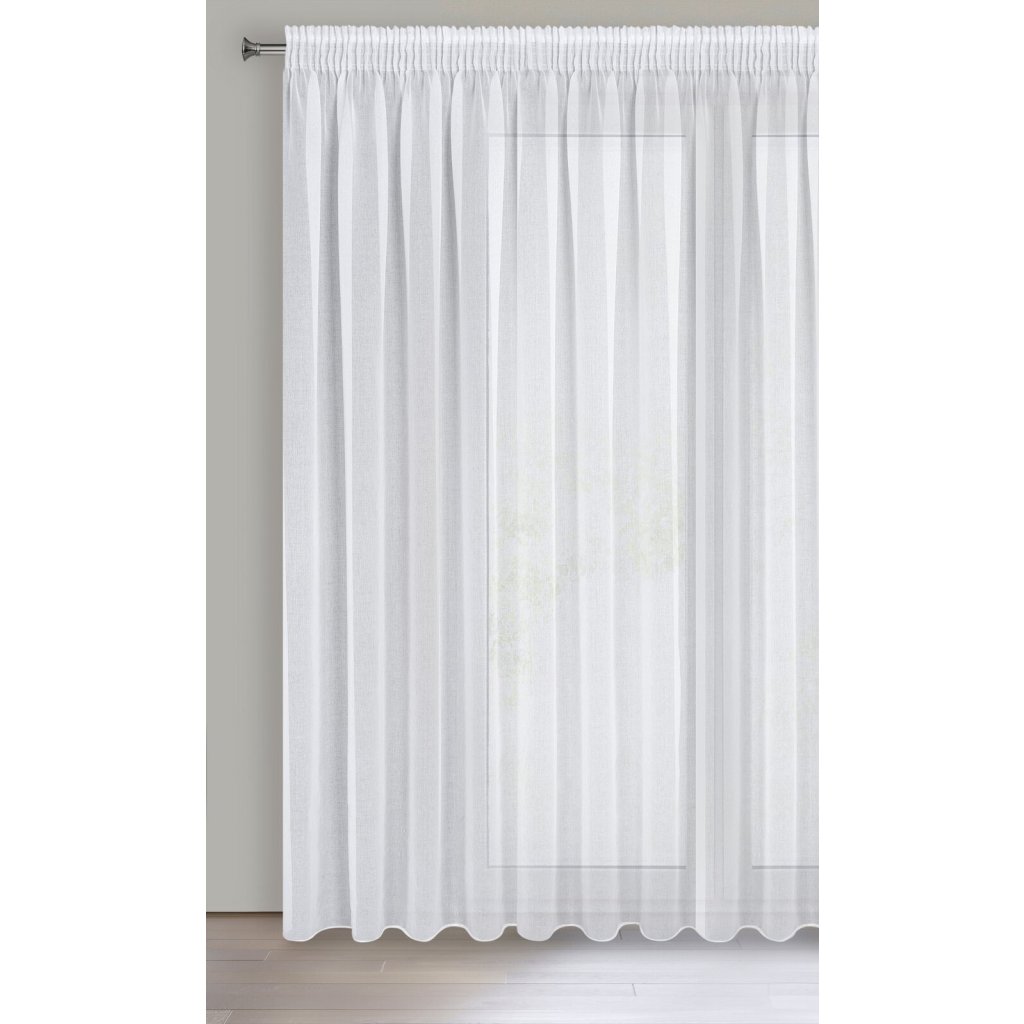 Hladká záclona v klasické bílé barvě je nadčasovou okenní dekorací. Jemný etamin, ze kterého byl ušit, zaručuje maximální soukromí a světlo, šířka: 350 cm, délka: 250 cm, barva: bílá, hmotnost: 50 GSM, složení: 100% polyester: 100% polyester.Doplňkové parametry