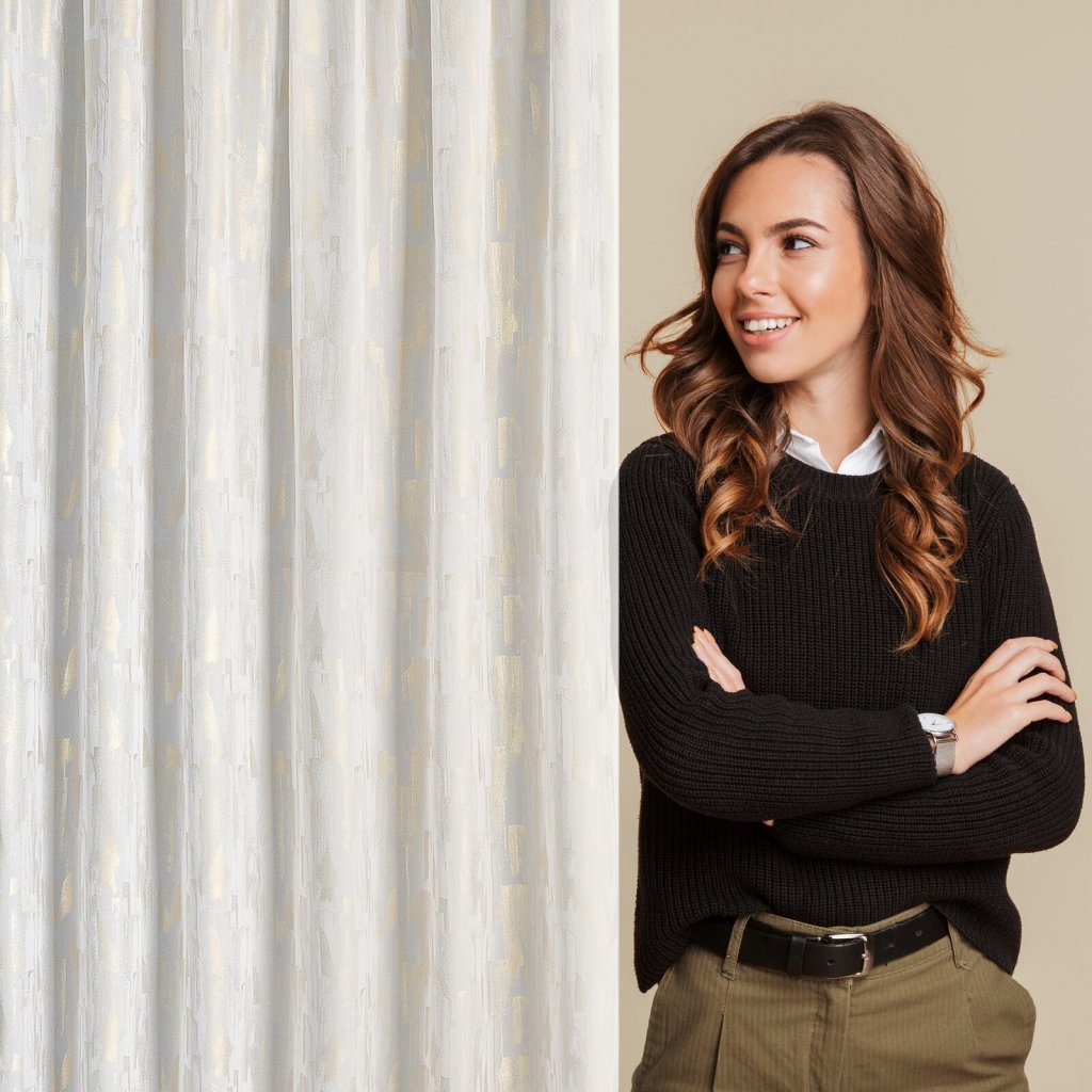 Hotová šifonová záclona s lesklým potiskem v šampaňské barvě, šířka: 140 cm, délka: 250 cm, barva: bílá a šampaňská, složení: 100% polyester.Doplňkové parametry