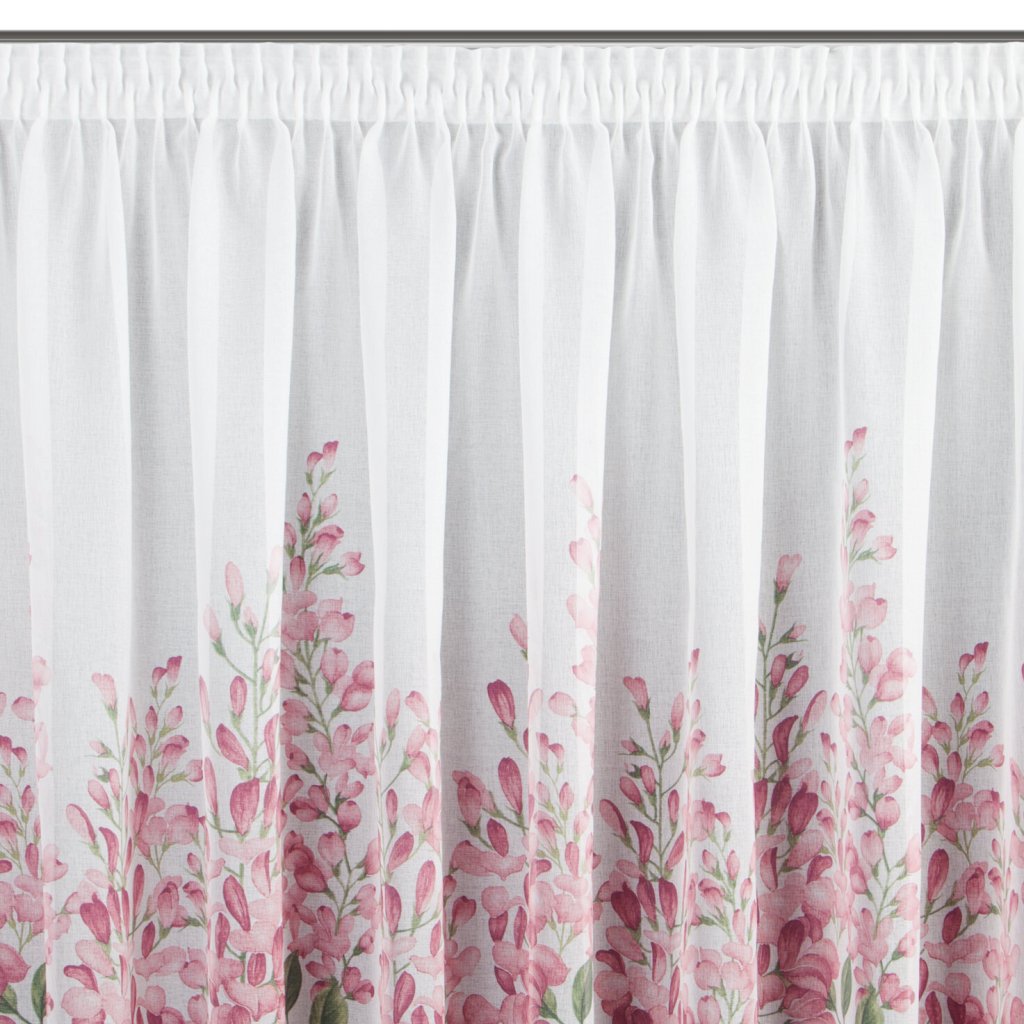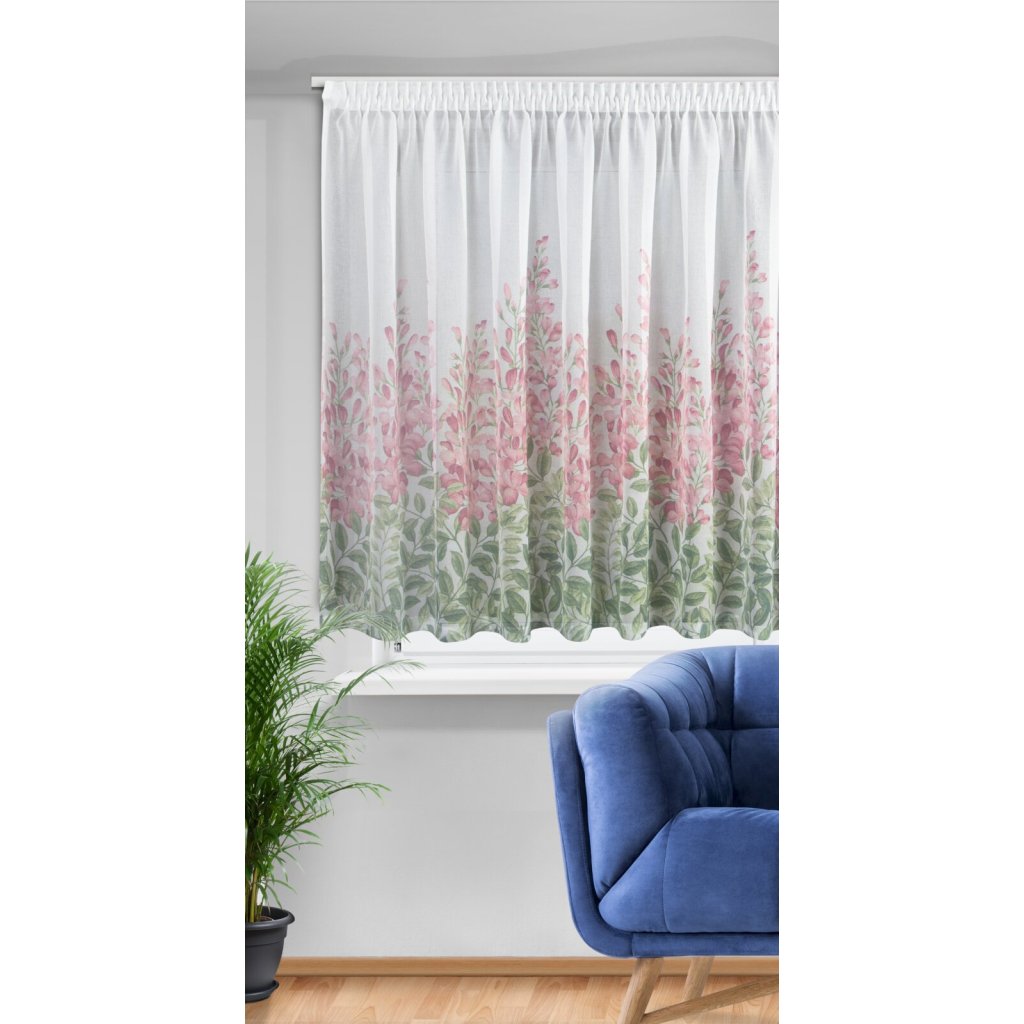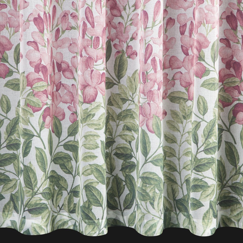 Lehká a jemná záclona JULIETA z gázy, ozdobená jemným zeleným a růžovým květinovým potiskem ve spodní části záclony. Šířka: 300 cm, délka: 160 cm, hmotnost: 80 GSM, barva: vícebarevná, složení: 100% polyester.Doplňkové parametry