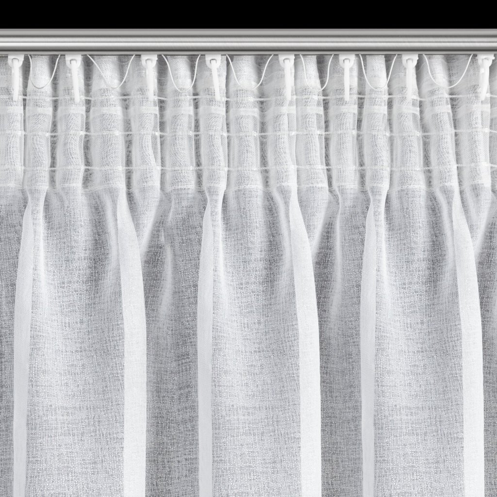 Záclona s lesklou nití, šířka: 350 cm, délka: 270 cm, barva: bílá, hmotnost: 80 GSM, složení: 100% polyester.Doplňkové parametry