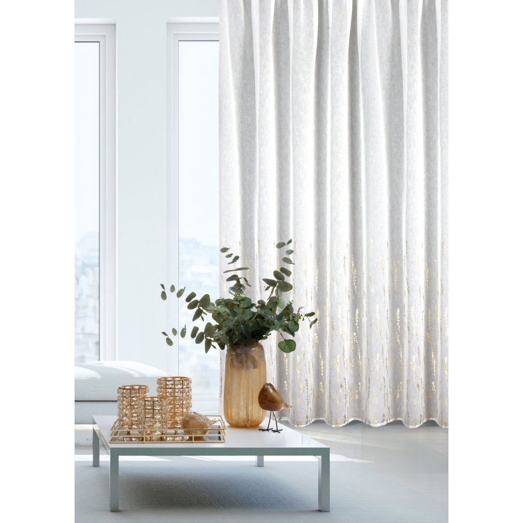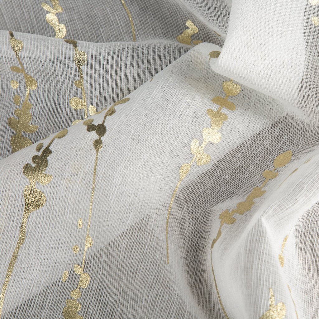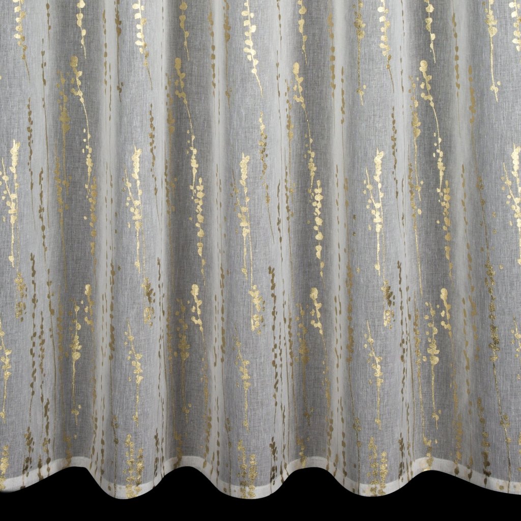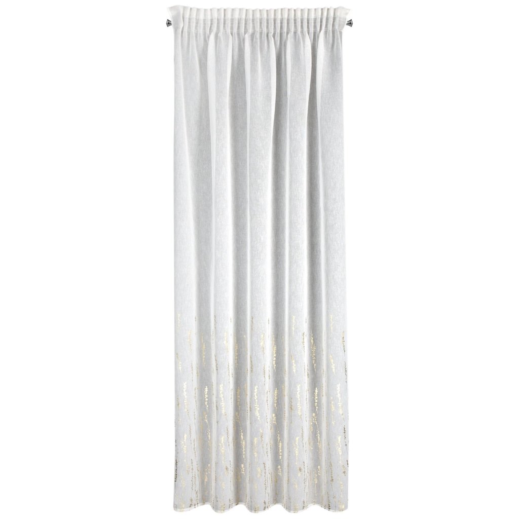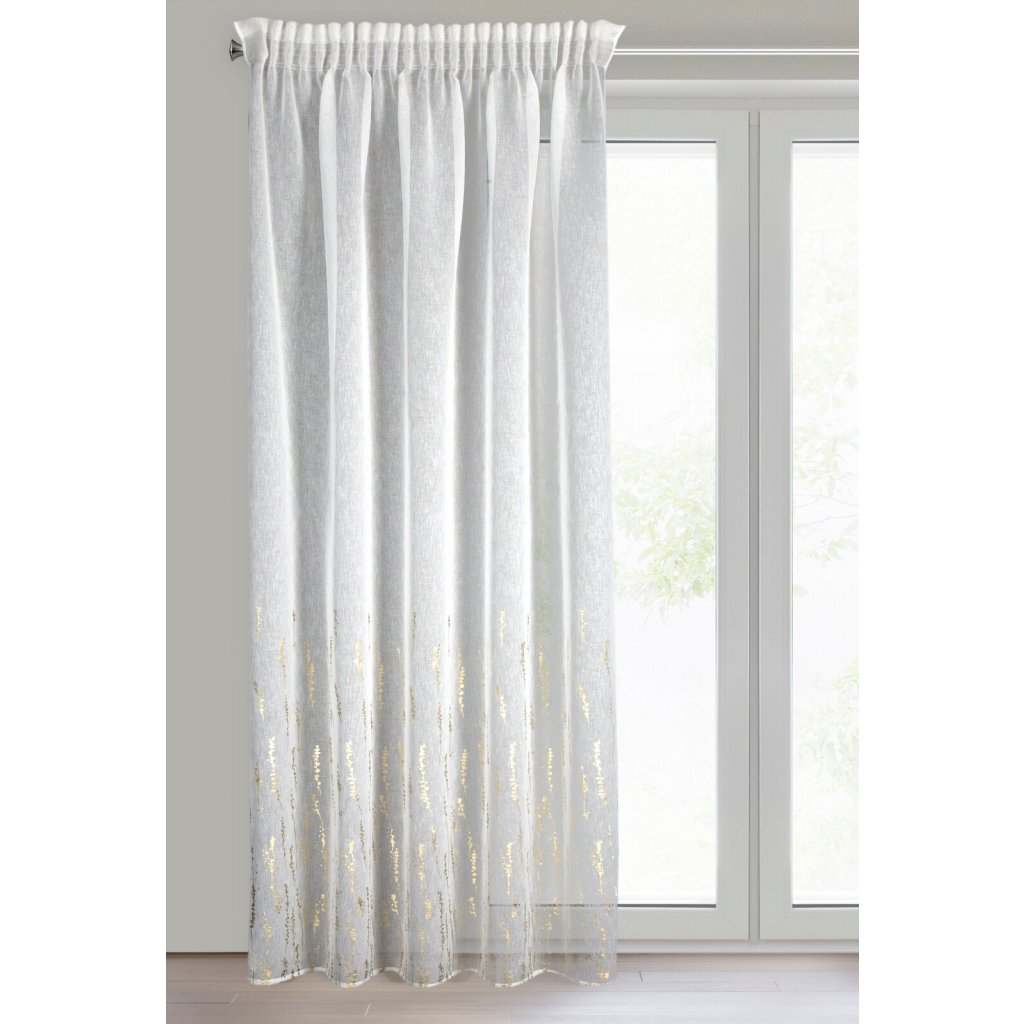 Hotová záclona v eko stylu s lesklým zlatým potiskem, šířka: 140 cm, délka: 250 cm, barva: bílá a zlatá, gramáž: 95 GSM, složení: 100% polyester.Doplňkové parametry