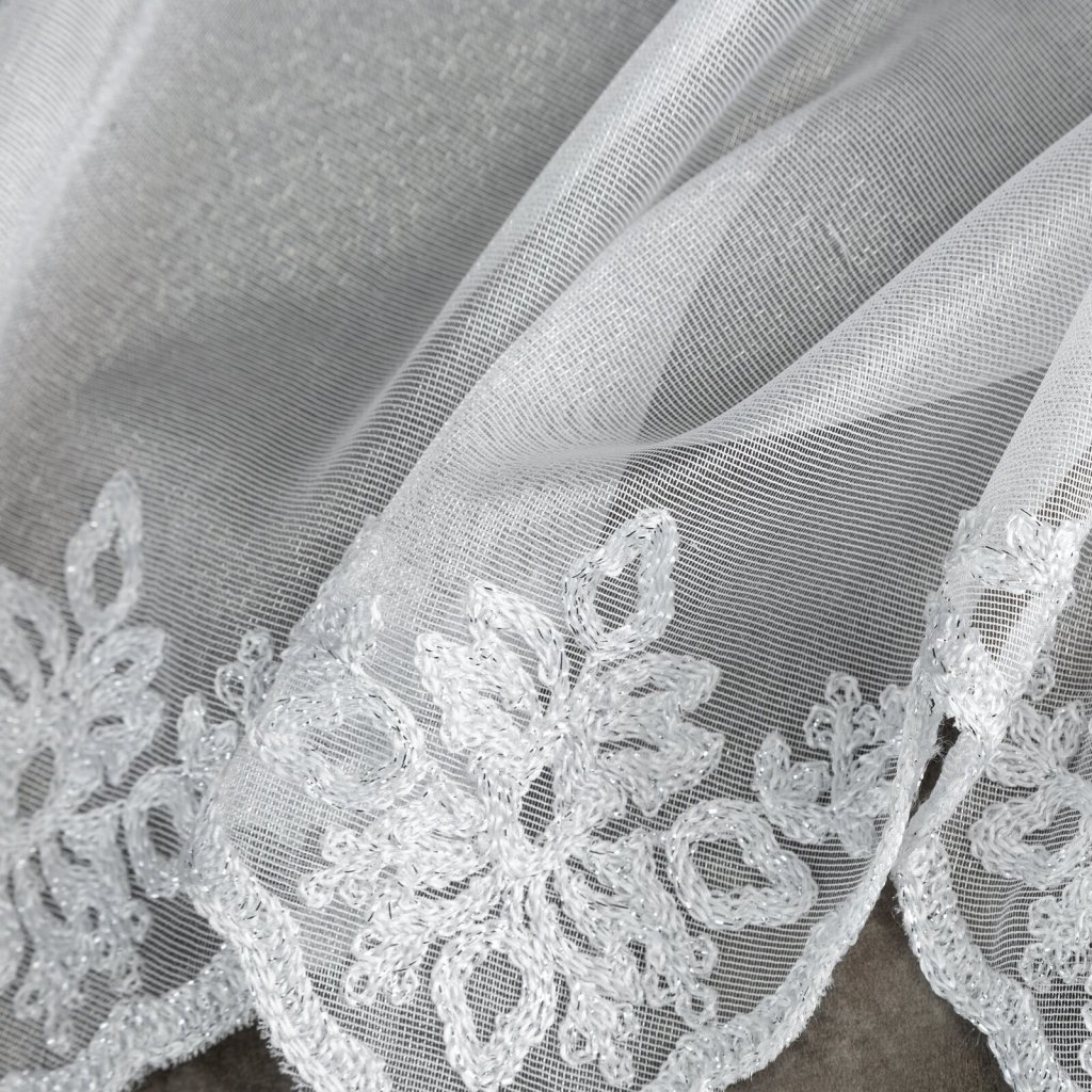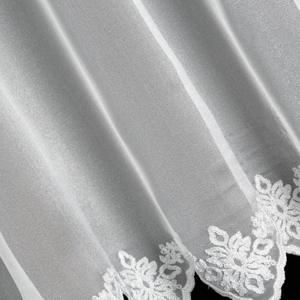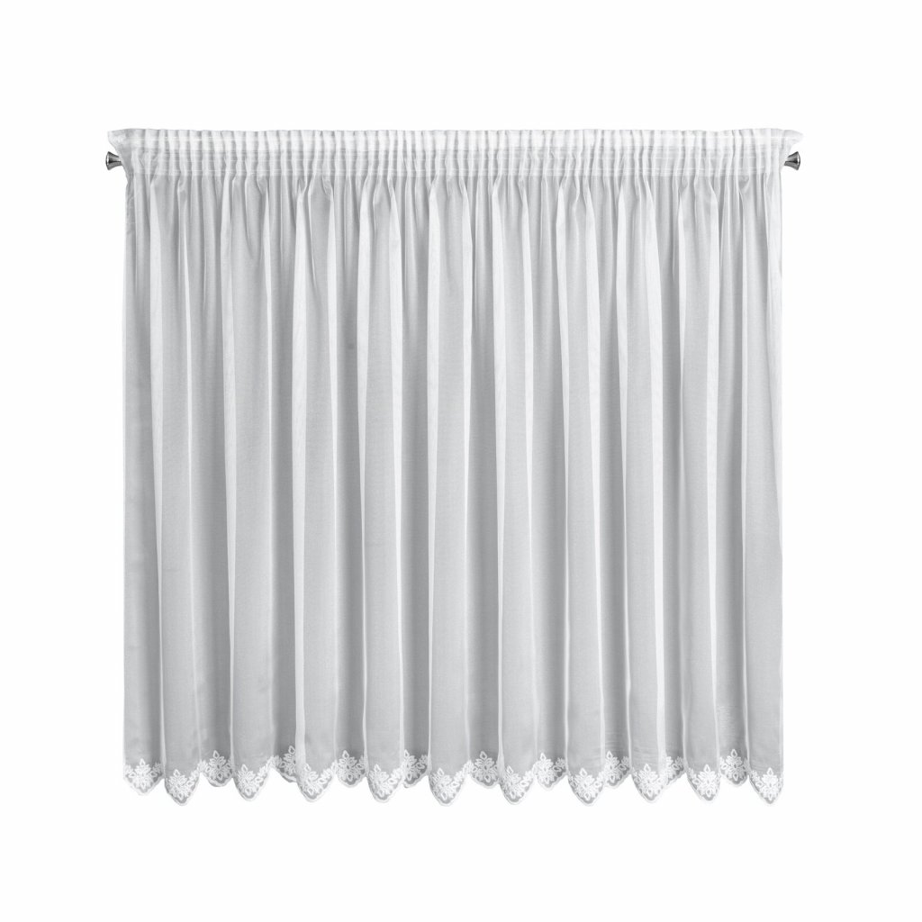Jednobarevná záclona, zdobená výšivkou. Šířka: 300 cm, délka: 145 cm, barva: bílá, hmotnost: 70 GSM, složení: 100 % polyesterBuďte první, kdo napíše příspěvek k této položce.