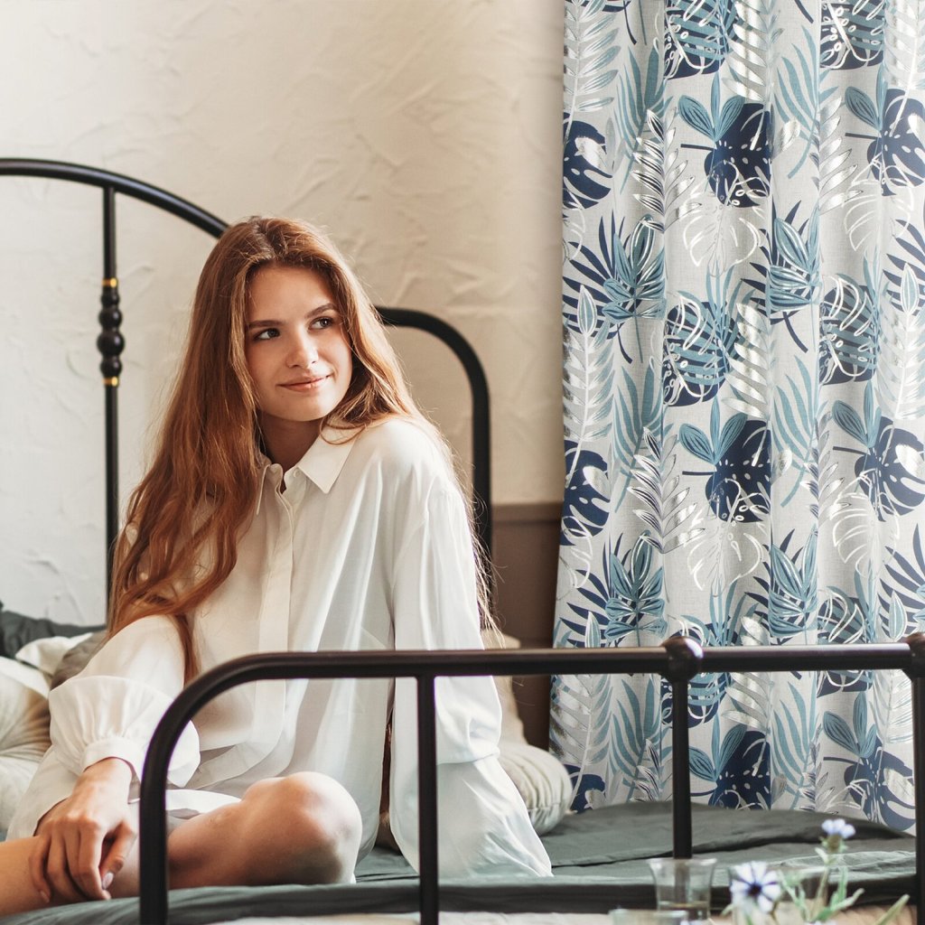 Záclona s botanickým motivem s lesklým potiskem, šířka: 140 cm, délka: 270 cm, barva: vícebarevná, hmotnost: 70 GSM, složení: 100% polyester.Doplňkové parametry