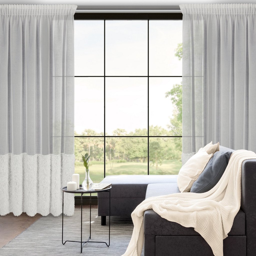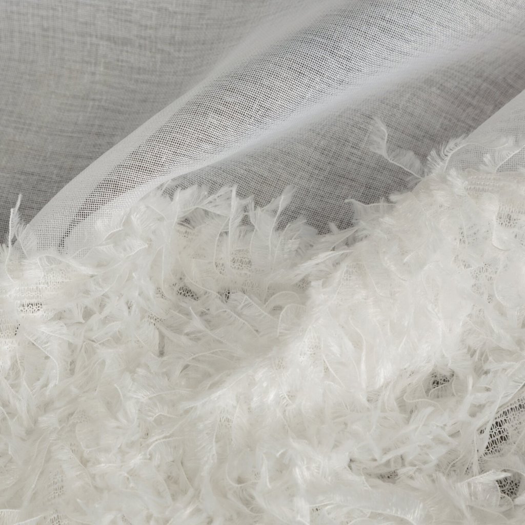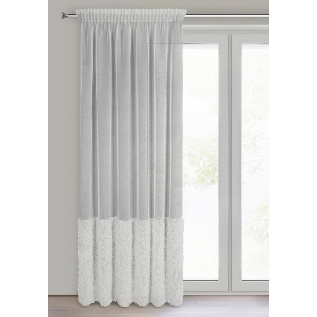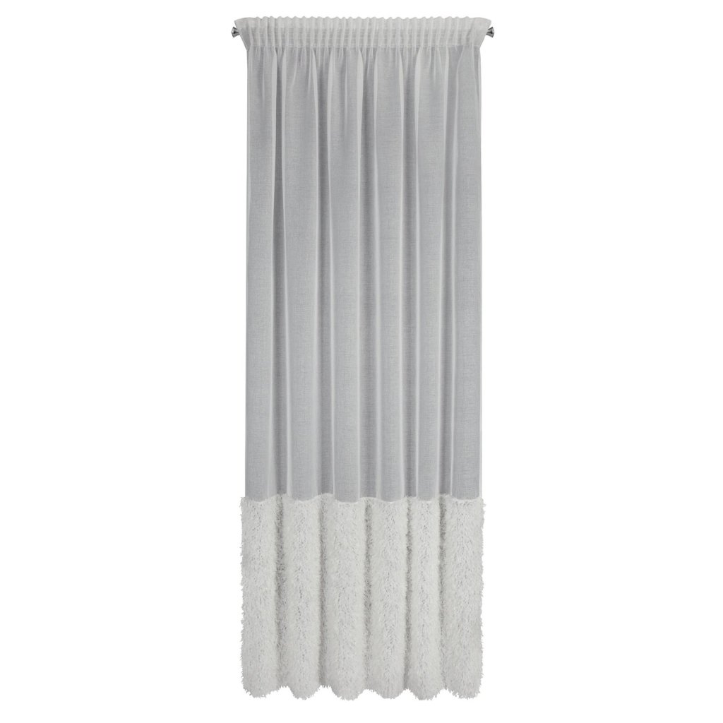 Hotová záclona s chlupatou aplikací, šířka: 140 cm, délka: 270 cm, barva: bílá, hmotnost: 70 GSM, složení: 100% polyester.Doplňkové parametry