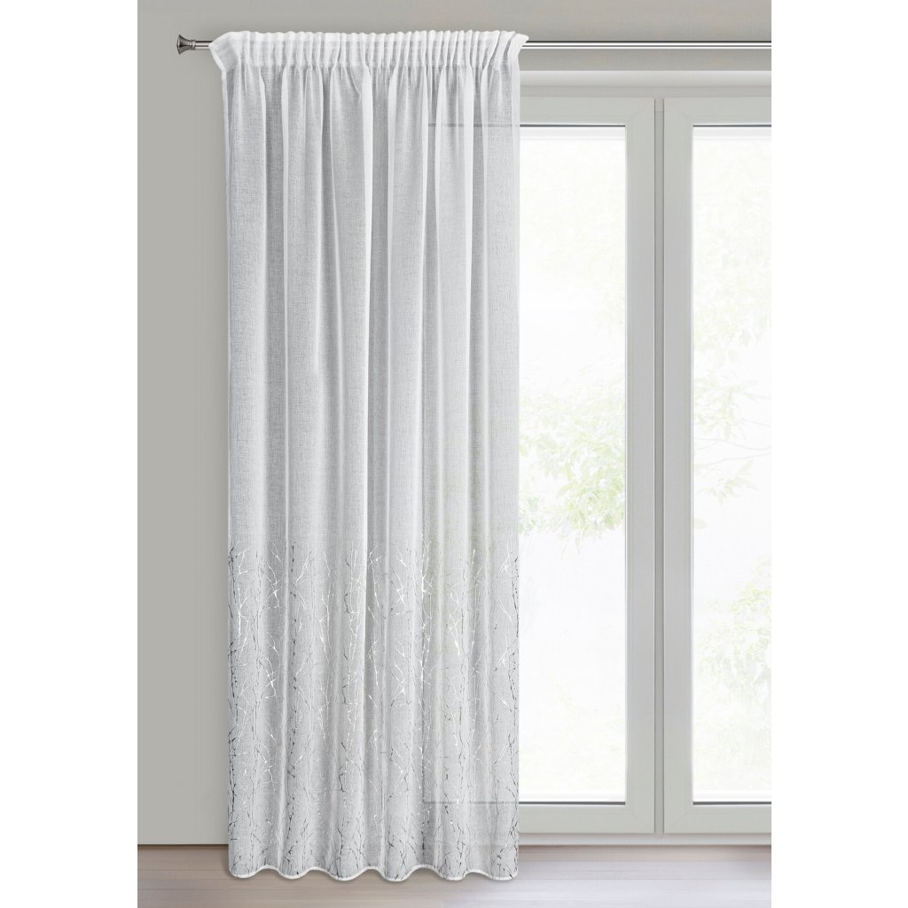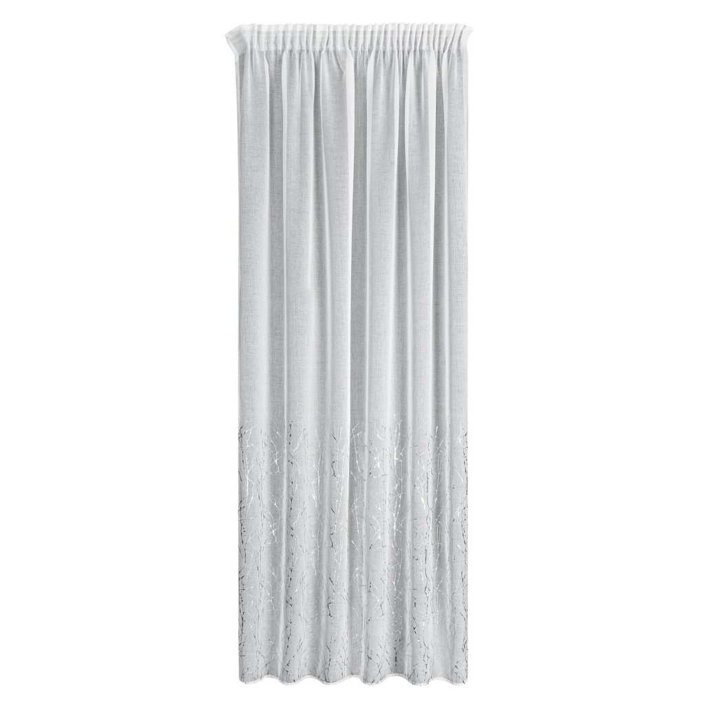 Hotová záclona s lesklým gumovým potiskem, šířka: 140 cm, délka: 270 cm, barva: bílá/ stříbrná, hmotnost: 70 GSM, složení: 100% polyester.Doplňkové parametry