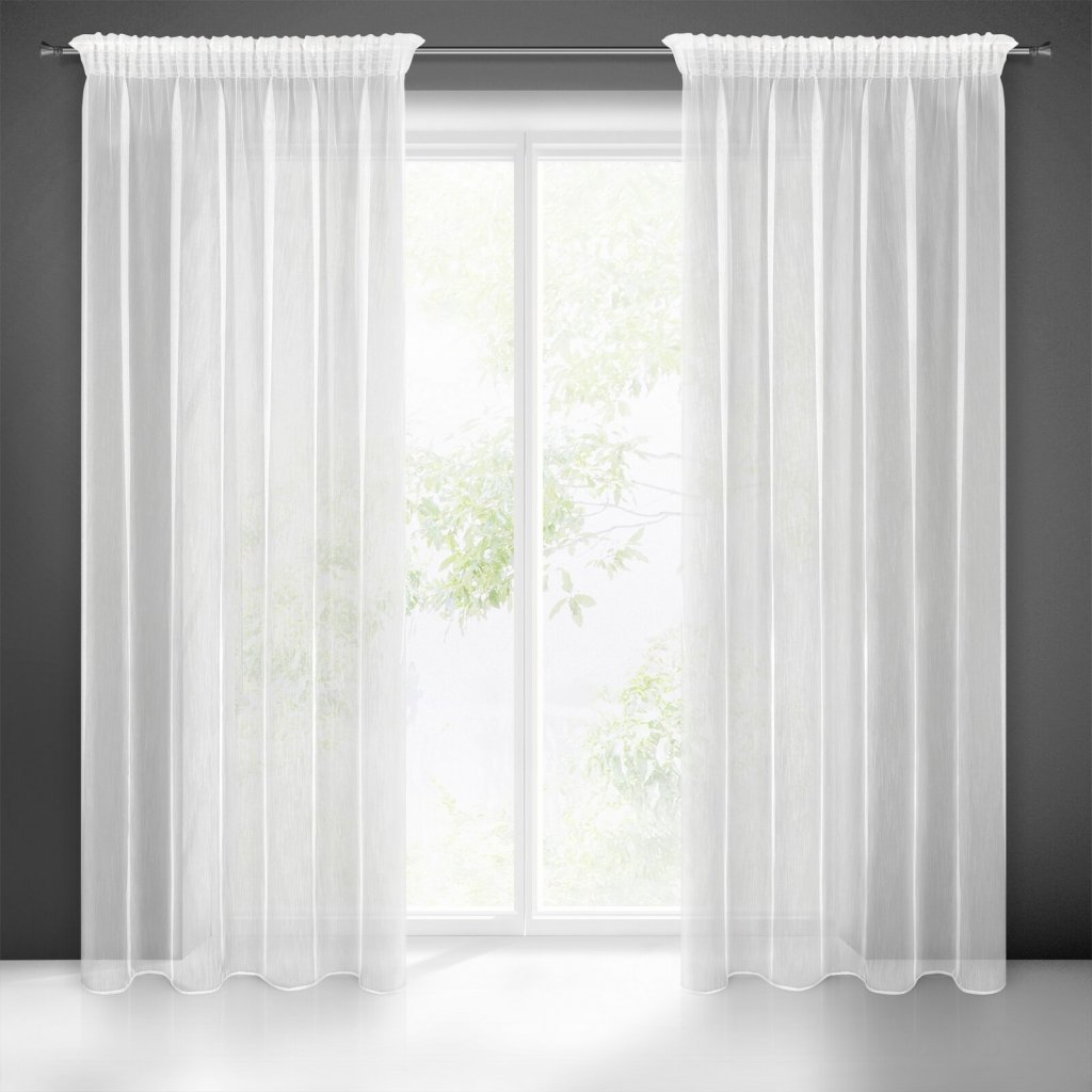 Dlouhá, jemná záclona ušitá z látky se specifickou strukturou, která dokonale propouští světlo. Šířka: 140 cm, délka: 270 cm, barva: bílá, hmotnost: 50 GSM, složení: 100 % polyesterDoplňkové parametry