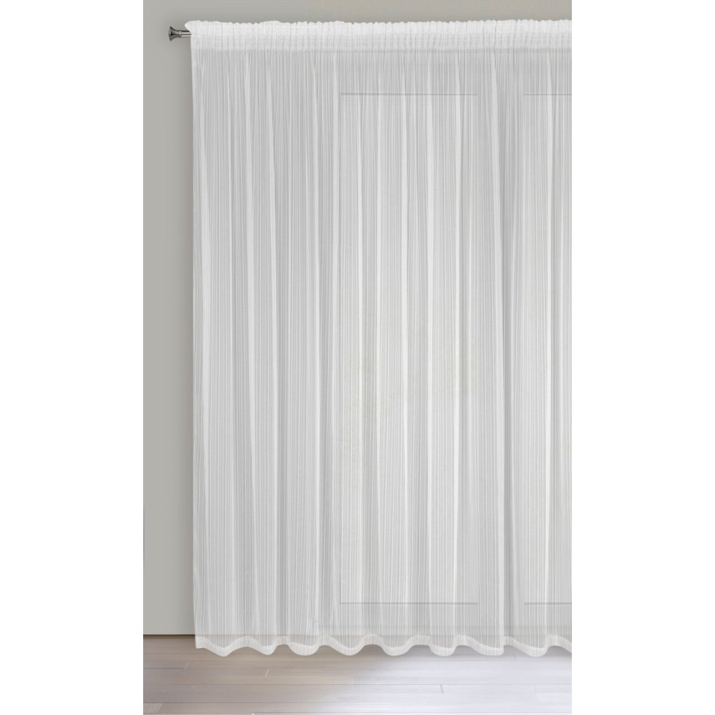 Hotová záclona s lesklou nití, šířka: 300 cm, délka: 270 cm, barva: bílá, hmotnost: 55 GSM, složení: 100% polyester.Doplňkové parametry