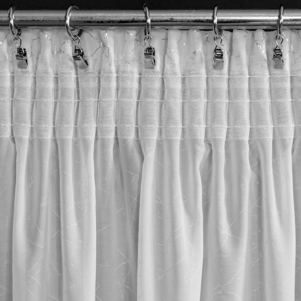 Záclona s lesklým potiskem, šířka: 140 cm, délka: 270 cm, barva: bílá, hmotnost: 60 GSM, složení: 100% polyester.Doplňkové parametry