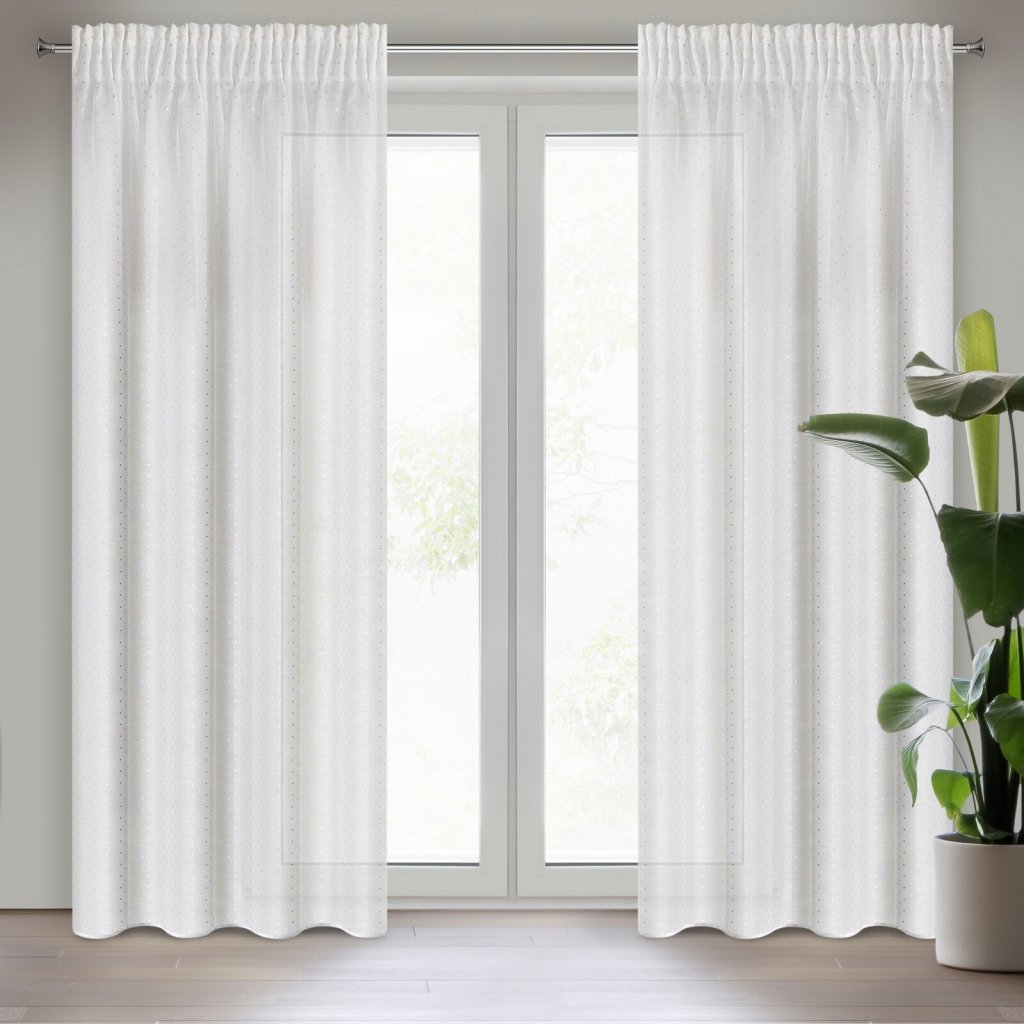 Měkká záclona z neprůhledné tkaniny zdobená jemným diamantovým potiskem. Vynikající rozptyl světla. Šířka: 140 cm, délka: 270 cm, barva: bílá, hmotnost: 50 GSM, složení: 100 % polyesterDoplňkové parametry