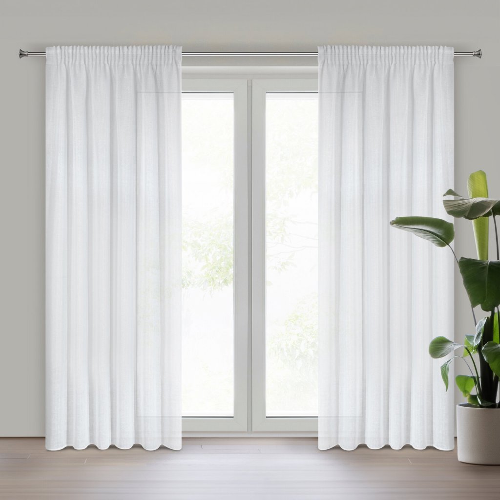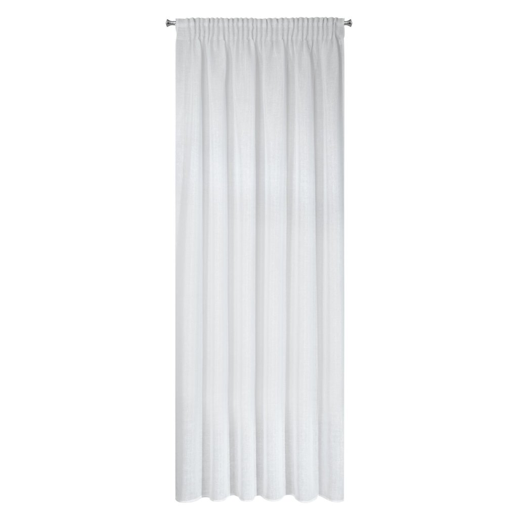 Dlouhá, jemná záclona ušitá z látky se specifickou strukturou, která dokonale propouští světlo. Šířka: 140 cm, délka: 270 cm, barva: bílá, hmotnost: 90 GSM, složení: 100 % polyesterDoplňkové parametry
