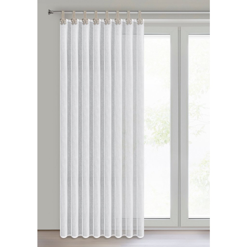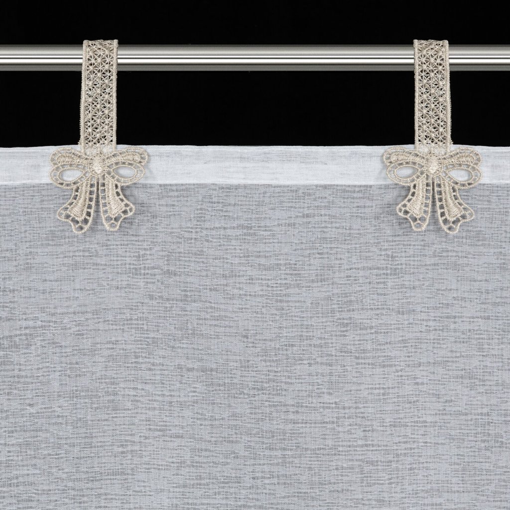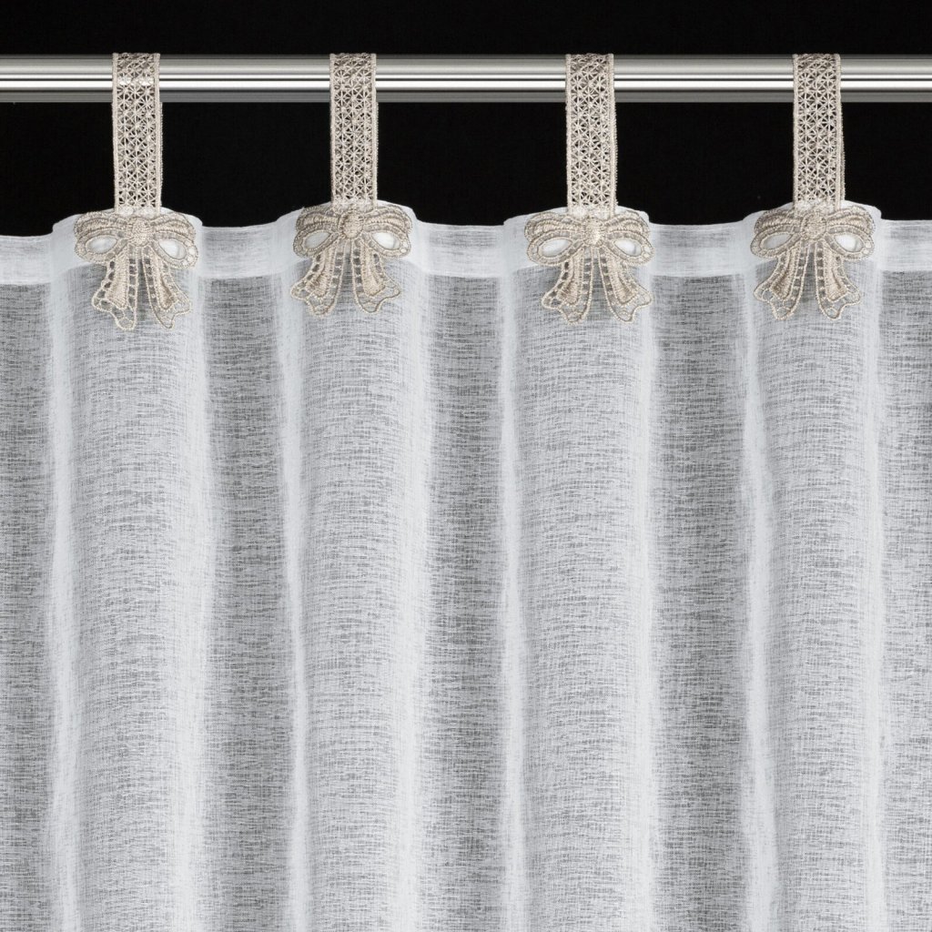 Hotová záclona na béžových poutkách ve tvaru mašle, šířka: 140 cm, délka: 250 cm, barva: bílá, hmotnost: 70 GSM, složení: 100% polyester.Doplňkové parametry