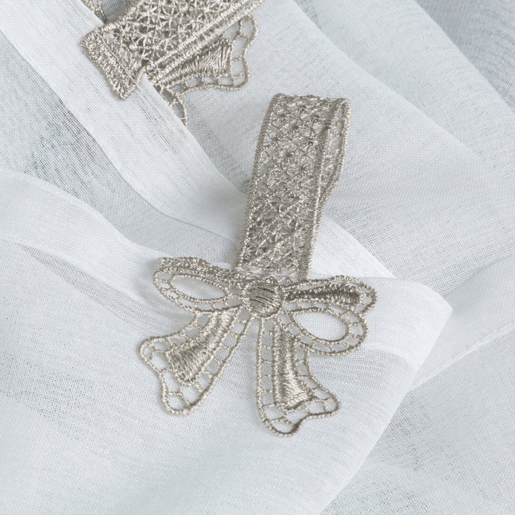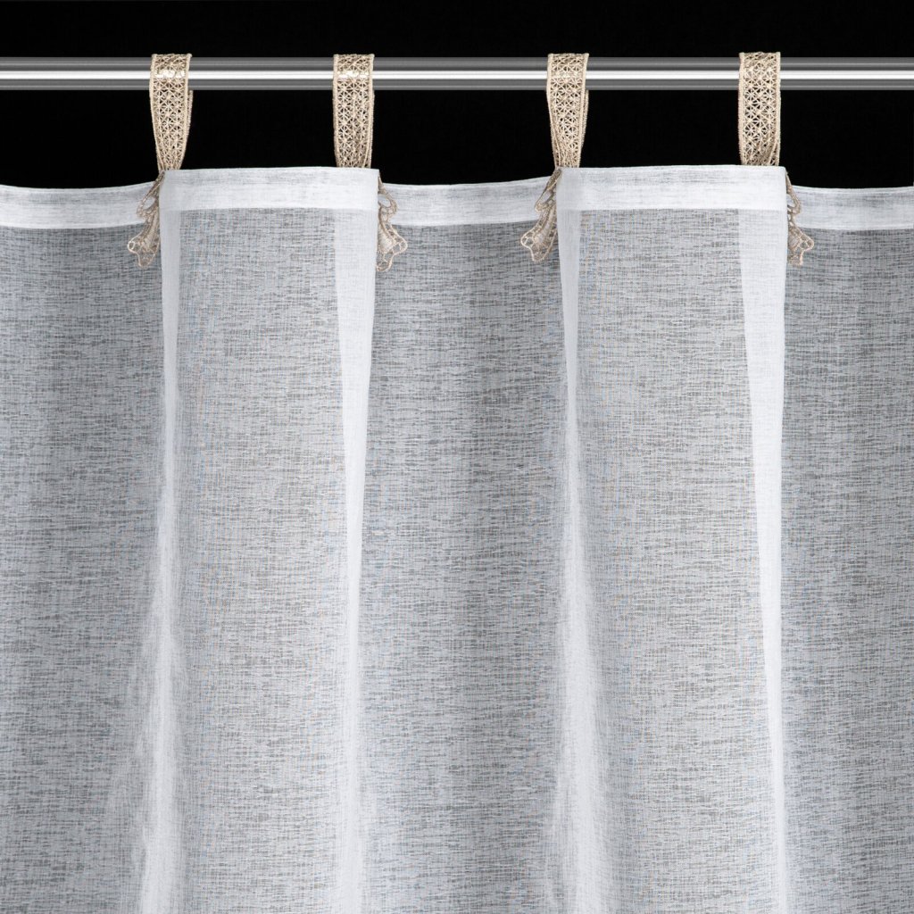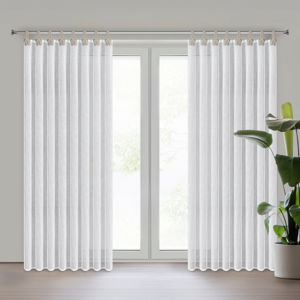 Hotová záclona na béžových poutkách ve tvaru mašle, šířka: 140 cm, délka: 250 cm, barva: bílá, hmotnost: 70 GSM, složení: 100% polyester.Doplňkové parametry