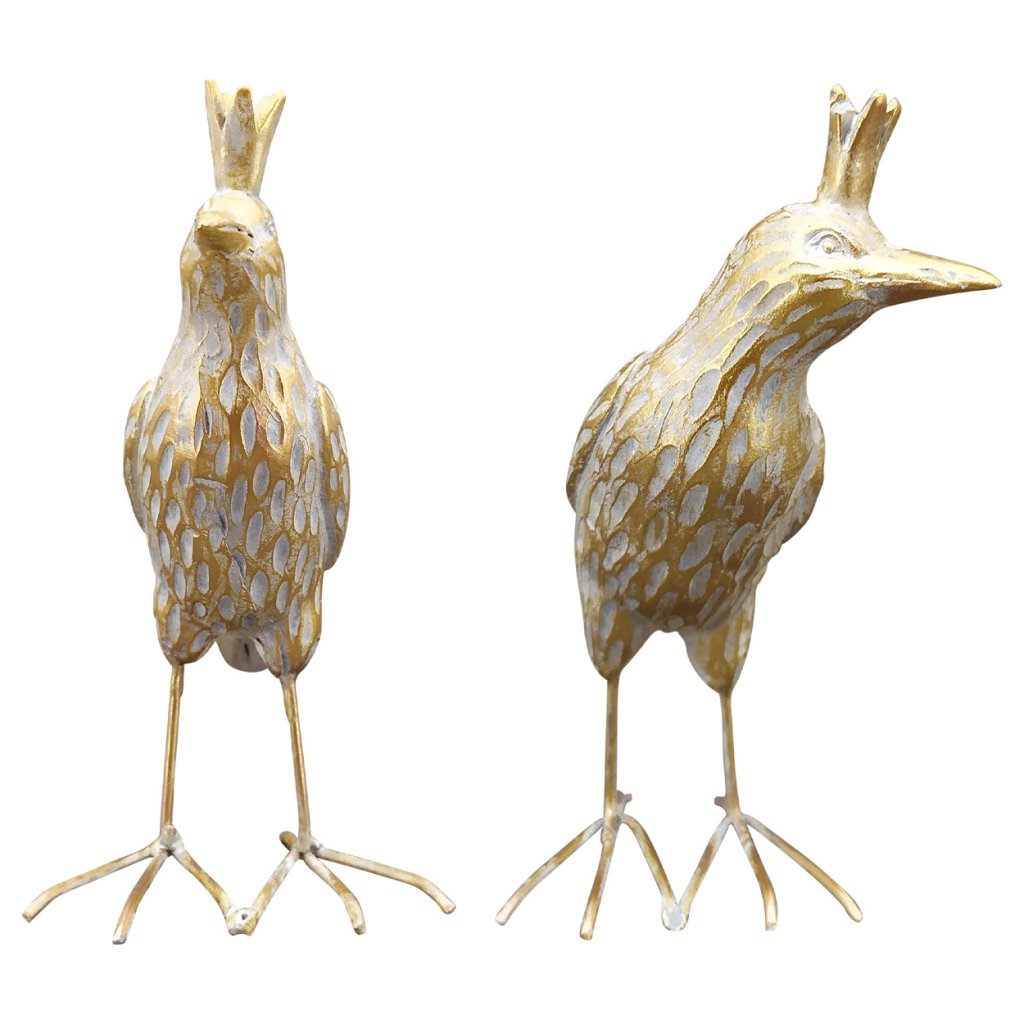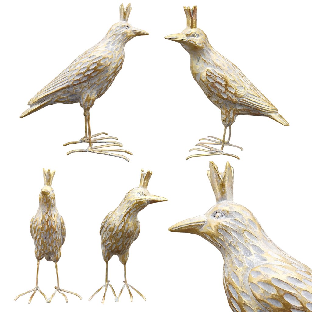 Zahradní figurka z polyresinu Jude v podobě dvou zlatých ptáčků je jemným dekoračním doplňkem, který vnese nádech elegance do každé místnosti. Sada obsahuje dvě figurky o výšce 11,5 cm , zhotovené z kvalitní pryskyřice polyresin , která zaručuje jejich lehkost a zároveň stabilitu při umístění. Zlatobílé provedení s detaily, jako je malá korunka na hlavě, působí vkusně a originálně. Tyto dekorativní sošky se skvěle hodí na poličky, okenní parapety nebo konzolové stolky, kde se stanou poutavým akcentem ve venkovském i moderním interiéru. Díky jejich neutrální barevnosti je lze snadno sladit s různými styly zařízení.Doplňkové parametry