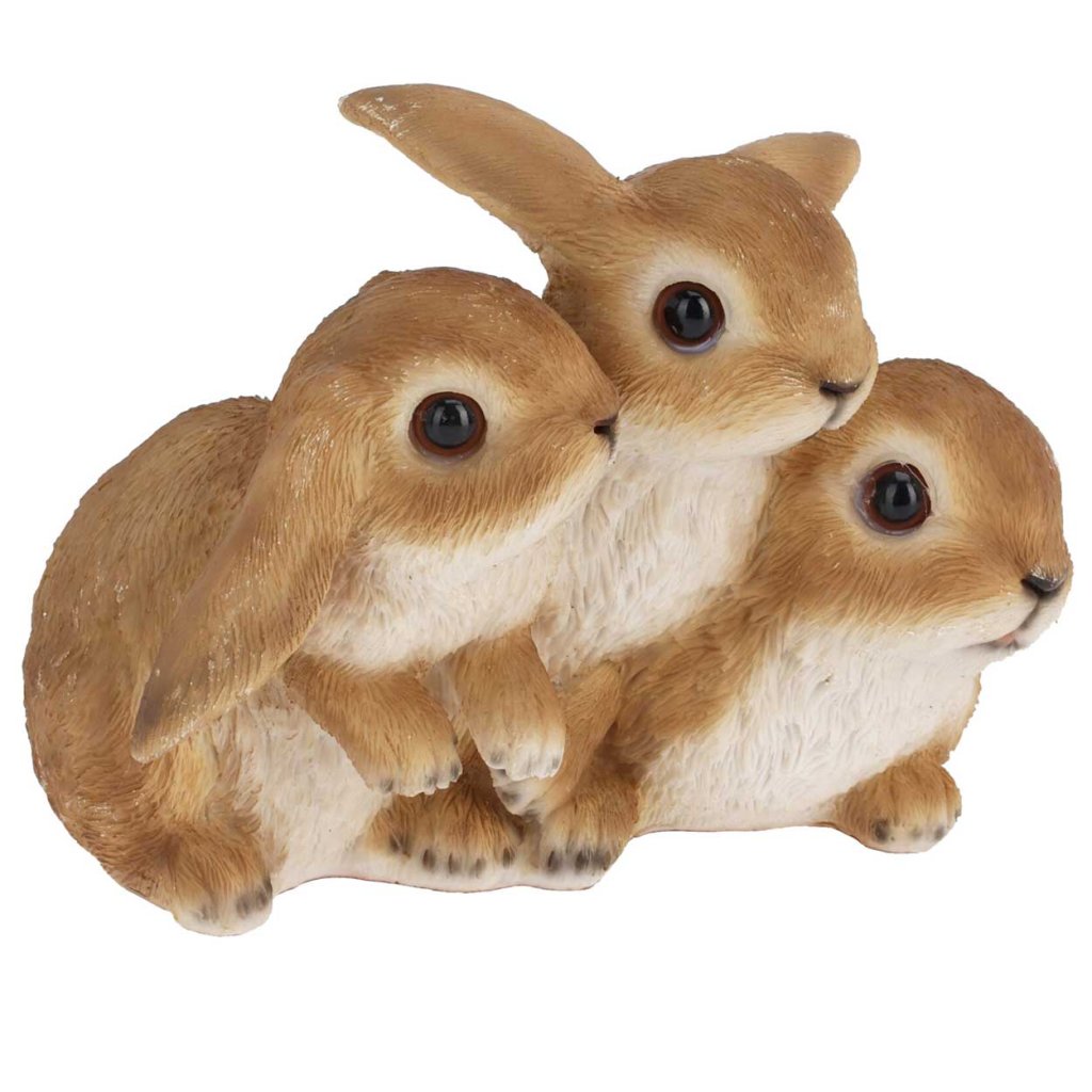 Zahradní figurka z polyresinu Rabbits Trio, 11x17 cm, hnědá