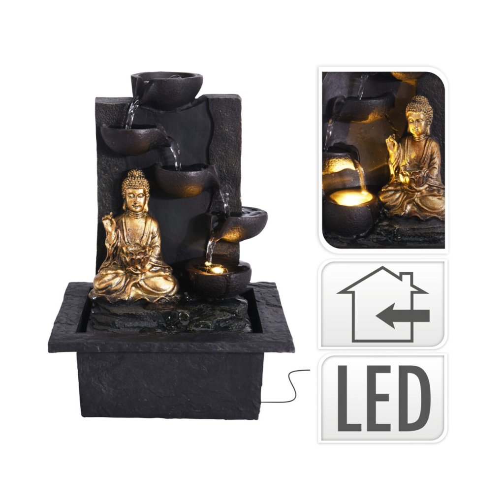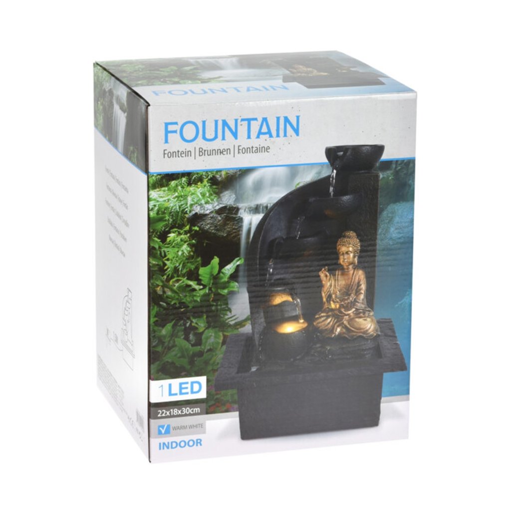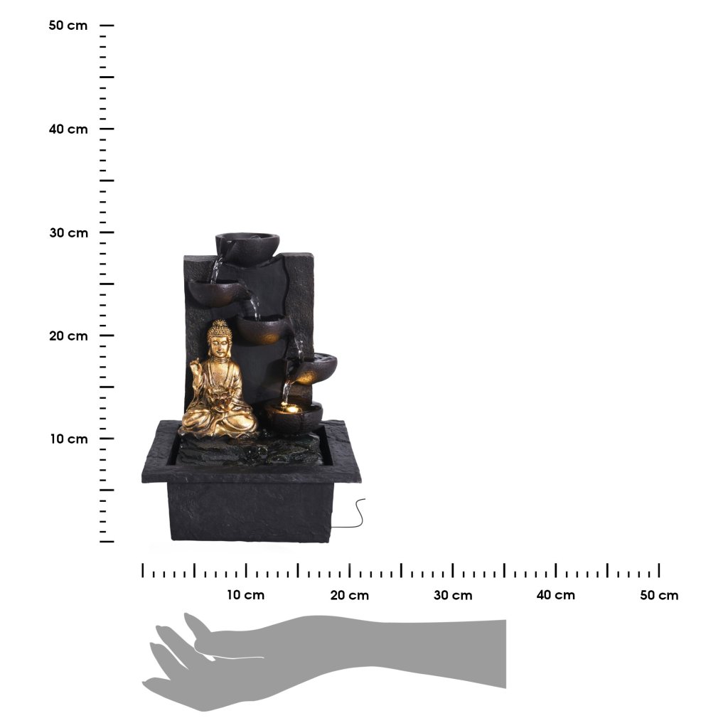 Zahradní fontána s osvětlením Budha, 30x21,5x18 cm, polistone, černá