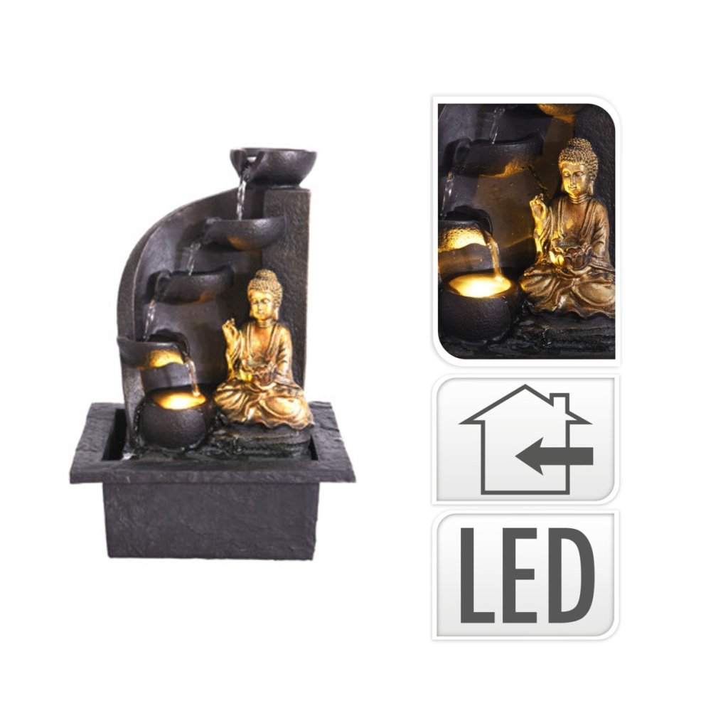 Zahradní fontána s osvětlením Budha 1, 30x21,5x18 cm, polistone, černá