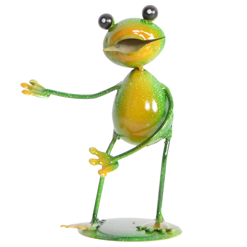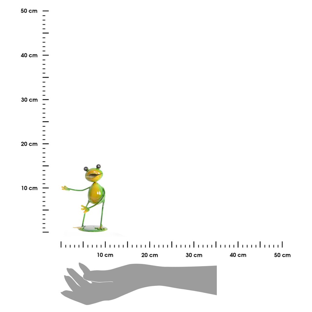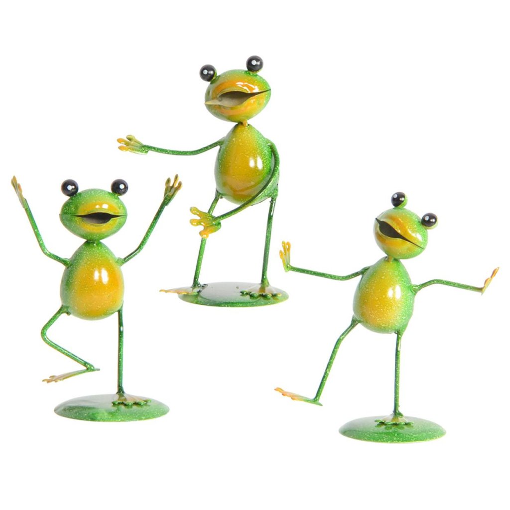 Zahradní kovová figurka Frogs v podobě tří vtipně pojatých žabek je ideálním způsobem, jak vnést do prostoru hravost a jedinečný charakter. Každá ze třech figurek má jinou pózu, což vytváří dynamický a zábavný vizuální dojem. Figurky o výšce 7,5 cm jsou vyrobeny z pevného kovu a ručně malovány sytými barvami , díky čemuž působí živě a příjemně oživí každý kout zahrady, terasy či okenního parapetu. Stabilní kovové nožičky zajišťují spolehlivé postavení na různých površích. Vícebarevné žabky jsou vhodné jako celoroční dekorace , ale výborně vyniknou i jako sezónní doplněk během jarních a letních měsíců. Jejich veselý vzhled zaručeně vykouzlí úsměv.Doplňkové parametry