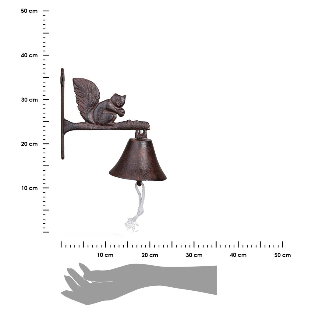 Zahradní zvonek Squirrel, 19x9,5 cm, litina, hnědá