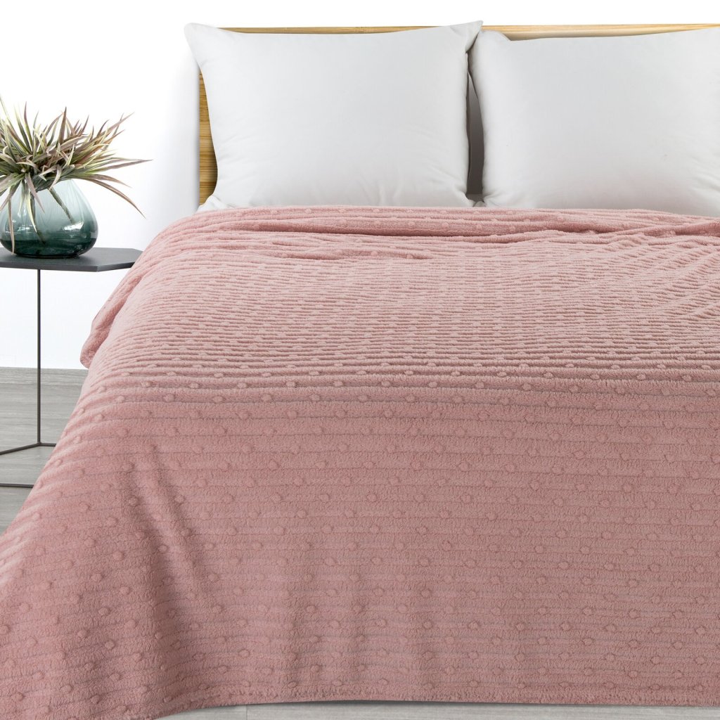Měkká a na dotek příjemná žakárová deka z kolekce LISA, šířka: 150 cm, délka: 200 cm, barva: pudrová, hmotnost: 240 GSM, složení: 100% polyester.Doplňkové parametry