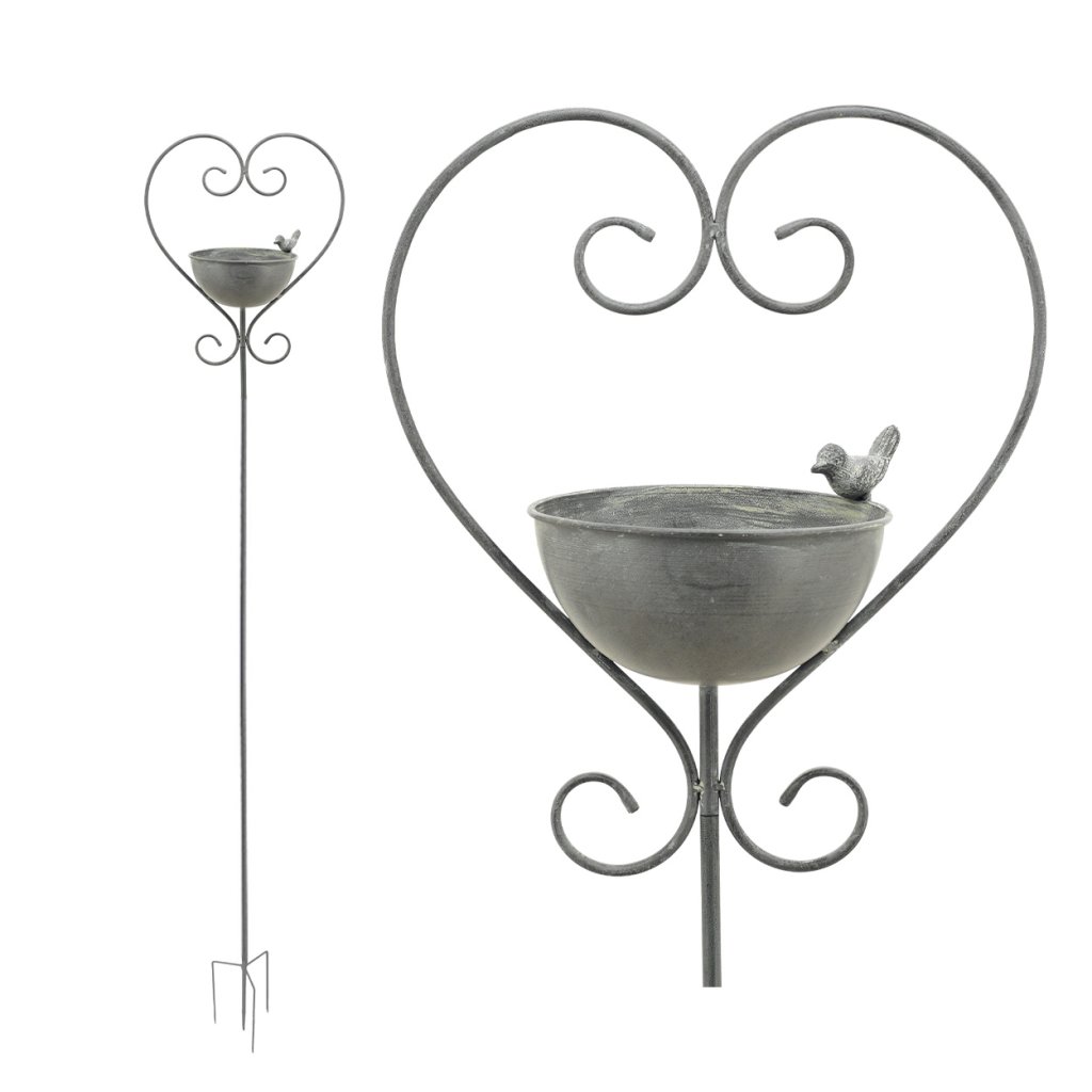 Zapichovací napajedlo pro ptáky Heart, 138,4x33,7 cm, kov, šedá