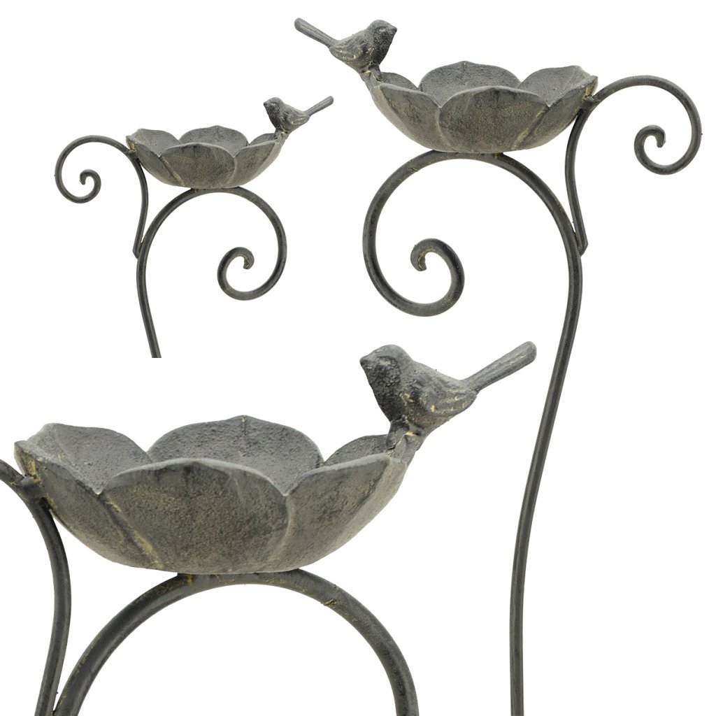 Zapichovací napajedlo pro ptáky Kara je jemně působící zahradní doplněk, který spojuje klasický design s praktickým využitím . Kovová mísa ve tvaru květinového kalicha působí elegantně a na jejím okraji sedí dekorativní figurka ptáčka , která dodává celé kompozici přívětivý a přírodní nádech. Napajedlo je vyrobeno z pevného a odolného kovu s povrchovou úpravou vhodnou pro celoroční venkovní použití. Špirálovitě tvarovaná základna přidává na vizuální zajímavosti a zároveň zaručuje stabilitu po zapíchnutí do země. Rozměry 99 × 26 cm umožňují snadné umístění do záhonu, ke keřům nebo k okraji trávníku. Tento funkční a dekorativní prvek přinese do tvé zahrady šarm a zároveň poskytne ptactvu místo k napití či koupání během teplejších dnů.Doplňkové parametry