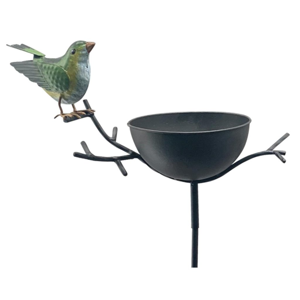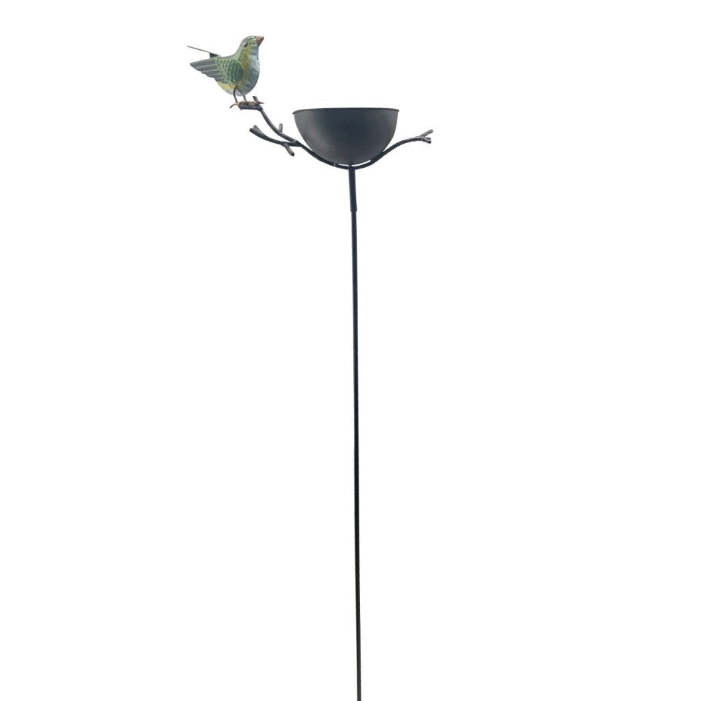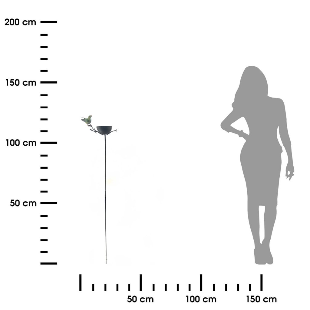 Zapichovací napajedlo pro ptáky Kate je elegantním spojením minimalistického designu a funkčního využití . Kompozici tvoří figurka ptáčka sedícího na jemně tvarované kovové větvičce a kovová mísa, která slouží jako napajedlo nebo krmítko. Díky výšce 122 cm se dekorace snadno začlení mezi záhony, keře či květinové skupiny. Vyrobeno je z odolného kovu vhodného pro celoroční venkovní použití , s povrchovou úpravou odolnou vůči povětrnostním vlivům. Jeho čisté linie a decentní barevné provedení působí moderně, ale zároveň přívětivě a harmonicky s přírodním prostředím. Tento funkční a vizuálně zdrženlivý prvek je ideální pro ty, kteří hledají vkusný doplněk do zahrady, který obohatí prostor a zároveň poskytne vodu nebo potravu pro drobné ptactvo.Doplňkové parametry