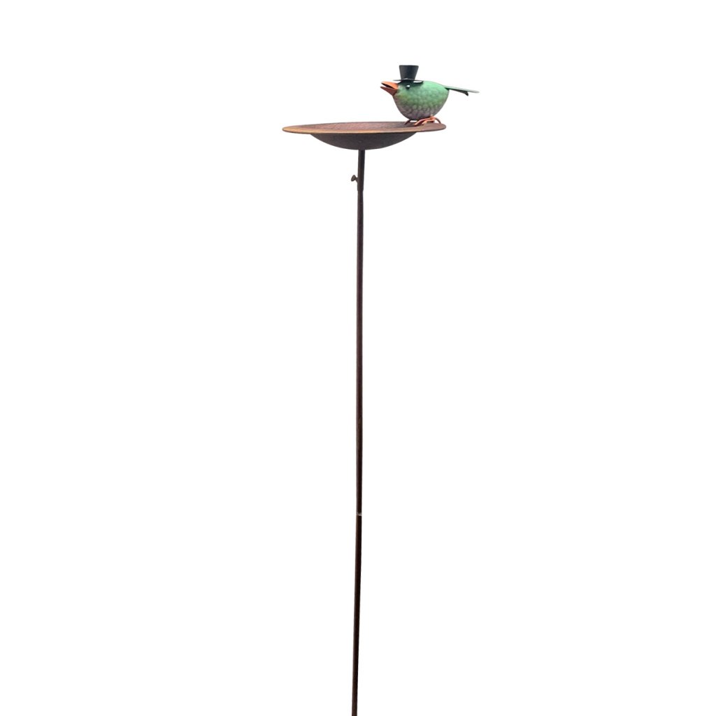 Zapichovací napajedlo pro ptáky Keira v sobě spojuje nápaditý design s praktickým využitím. Na okraji široké kovové mísy sedí barevná figurka zeleného ptáčka s cylindrem , která dodává celému doplňku hravý a výjimečný charakter. Mísa slouží jako prostor pro krmivo nebo vodu a zároveň se stává výrazným dekorativním prvkem v exteriéru . Napájedlo je vyrobeno z odolného kovu s povrchovou úpravou vhodnou pro vnější použití , díky čemuž spolehlivě odolává nepříznivému počasí. Výška 114 cm umožňuje jednoduché a stabilní zapíchnutí do půdy na trávníku, v záhonu nebo u terasy. Tento dekorativní prvek s veselým motivem ptáčka vnese do zahrady originalitu a zároveň vytvoří příjemné místo pro ptactvo.Doplňkové parametry