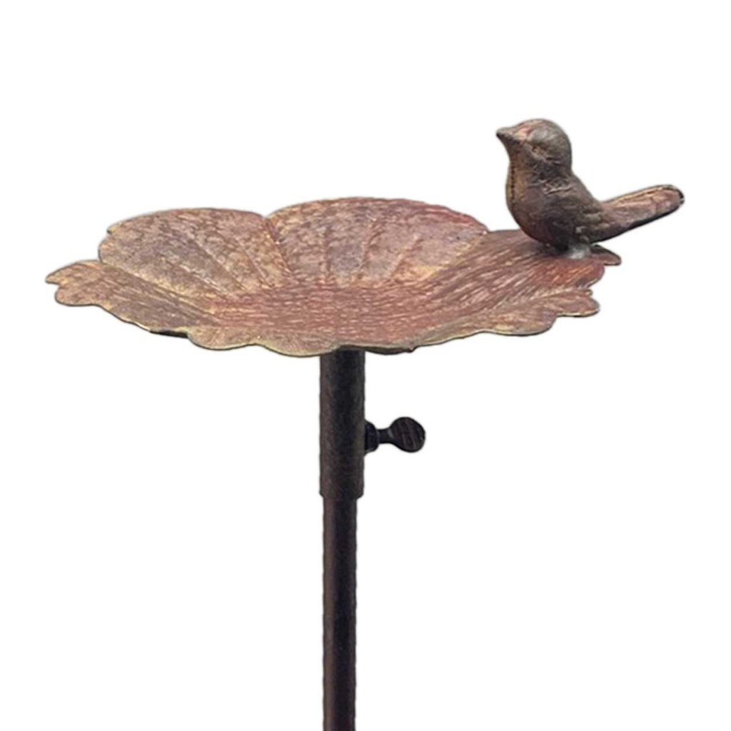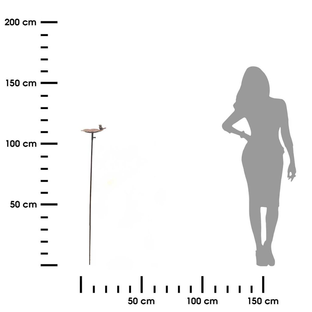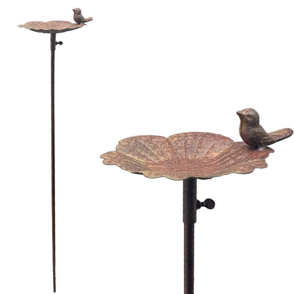Zapichovací napajedlo pro ptáky Kendra je elegantním a přírodně působícím doplňkem, který v sobě spojuje funkčnost a jemnou zahradní estetiku. Kovová mísa ve tvaru listu s figurkou ptáčka sedícího na okraji vytváří harmonickou kompozici, která působí snadno a zároveň dekorativně. Vyrobeno z odolného kovu s patinovaným měděným efektem , napajedlo spolehlivě odolává povětrnostním vlivům a je vhodné pro celoroční venkovní použití. Štíhlá a stabilní konstrukce o výšce 117 cm umožňuje snadné zapíchnutí do půdy v zahradě, záhonu nebo u terasy. Tento dekorativní prvek s listovým motivem dodá prostoru přírodní nádech a zároveň poskytne praktické místo pro vodu nebo potravu pro drobné ptactvo.Doplňkové parametry