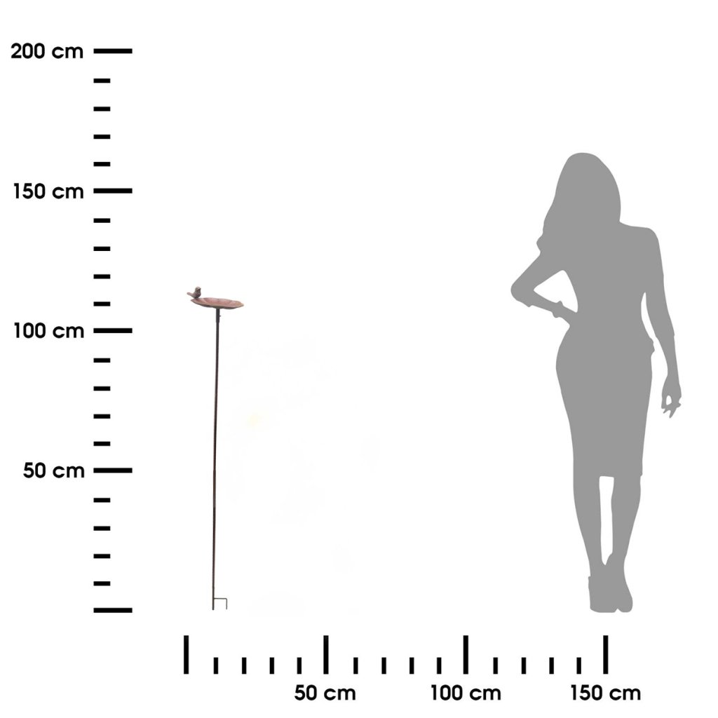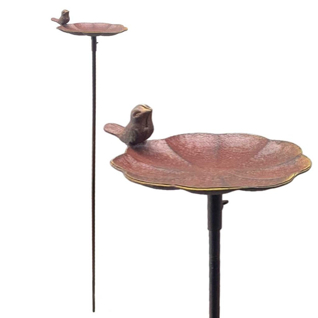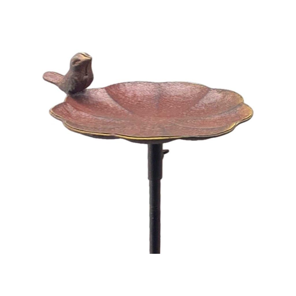 Zapichovací napajedlo pro ptáky Kendra2 v měděném odstínu je jemně působící zahradní doplněk, který v sobě spojuje dekorativnost a funkčnost. Miska ve tvaru rozkvetlého květu působí lehce a elegantně, zatímco malá figurka ptáčka na okraji dodává celku hravý a přívětivý charakter. Napajedlo je vyrobeno z odolného kovu , který má povrchovou úpravu v teplém bronzově-mědenním tónu se zlatavými detaily . Díky výšce 117 cm a stabilní konstrukci jej lze jednoduše zapíchnout do půdy – ať už v záhonu, u terasy nebo mezi květinovými aranžmá. Tento dekorativní prvek s květinovým motivem obohatí zahradu o jemnou estetiku a zároveň poskytne ptactvu praktické místo pro napití nebo krmení.Doplňkové parametry