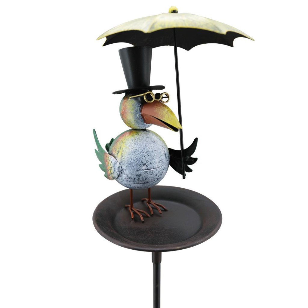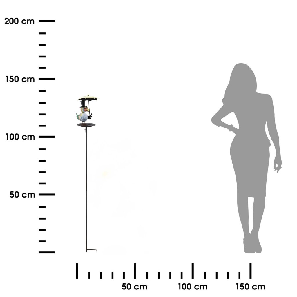 Zapichovací napajedlo pro ptáky Kevin zaujme na první pohled svým originálním designem s postavičkou ptáčka v cylindru, brýlích as deštníkem . Tento netradiční zahradní doplněk v sobě spojuje hravou estetiku s praktickým využitím – poslouží jako stylové místo pro podávání krmiva pro ptáky . Vyrobeno z odolného kovu , napajedlo vyniká barevným zpracováním a odolností vůči povětrnostním vlivům . Stabilní miska umístěná pod dekorací nabízí dostatek prostoru pro vodu nebo potravu, přičemž výška 137 cm zajišťuje pohodlný přístup pro ptactvo i vizuální zvýraznění v prostoru. Tento zahradní doplněk s humorným nádechem se výborně hodí k umístění do záhonu, mezi květiny, k terase nebo do trávníku, kde oživí exteriér a přitáhne pohledy i zpěvné návštěvníky.Doplňkové parametry