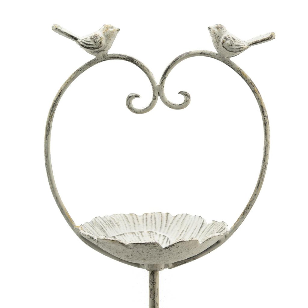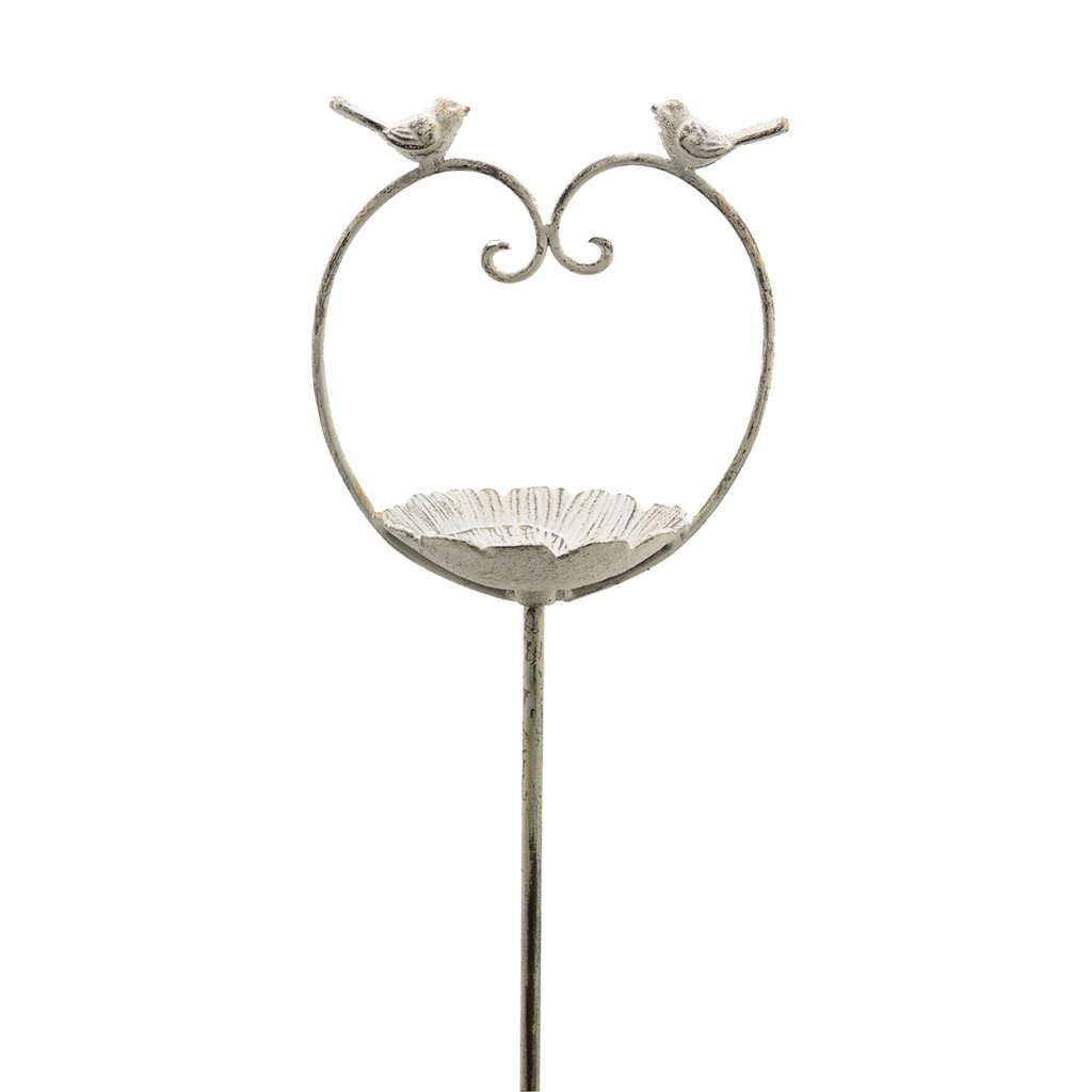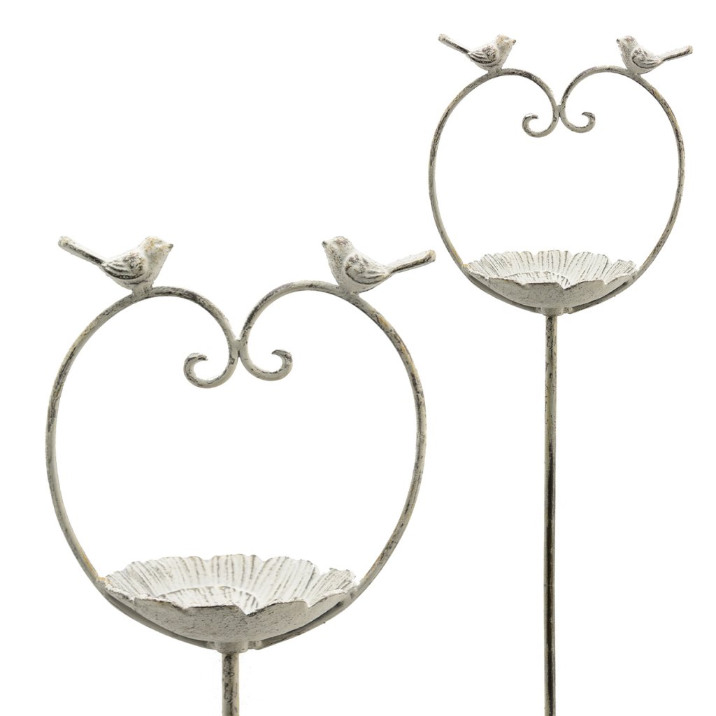 Zapichovací napajedlo pro ptáky Love okouzlí romantickým vzhledem a jemnou kovovou konstrukcí , která vnáší do zahrady, na terasu nebo balkon nádech půvabu . zapadá mezi květiny a zeleň. Celek je vyroben z kovu s běleným, patinovaným povrchem , který zvýrazňuje vintage styl .Doplňkové parametry