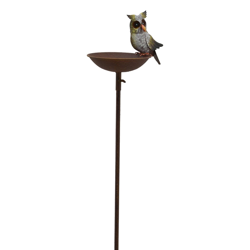 Zapichovací napajedlo pro ptáky Owl zaujme už na první pohled díky originálnímu zpracování s dekorativní sovou sedící na okraji misky. Tento vícebarevný doplněk je vyroben z odolného kovu a navržen tak, aby v exteriéru působil nejen funkčně, ale také esteticky. Napajedlo o výšce 124,5 cm a šířce 24 cm nabízí dostatečný prostor na vodu či potravu pro drobné zahradní ptactvo. Kovová konstrukce je pevná a odolná vůči nepříznivým povětrnostním podmínkám, což zaručuje dlouhodobé využití po celou sezónu. Jednoduché zapíchnutí do země umožňuje rychlou instalaci, díky čemuž se tento zahradní prvek snadno stane součástí každého prostoru. Estetický design se sochou sovy vnáší do zahrady hravý a zároveň elegantní nádech.Doplňkové parametry