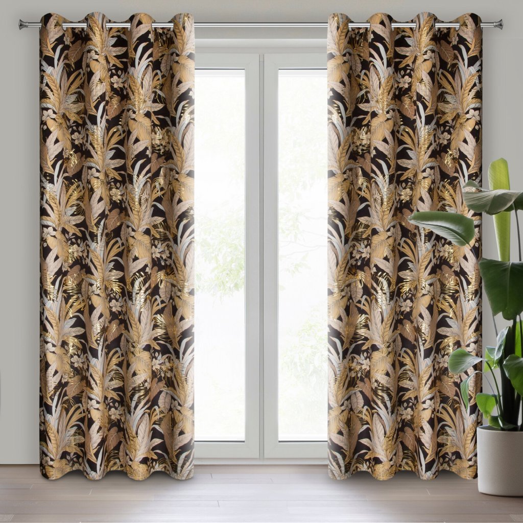 Sametový závěs se zlatým potiskem, šířka: 140 cm, délka: 250 cm, hmotnost: 200 GSM, složení: 100% polyester.Doplňkové parametry