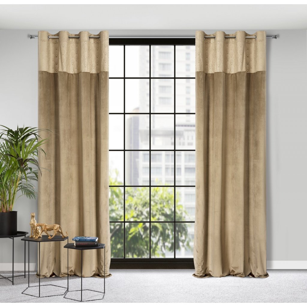 Sametový závěs s potiskem šířka: 140 cm, délka: 250 cm, barva: béžová, hmotnost: 200 GSM, složení: 100 % polyesterDoplňkové parametry