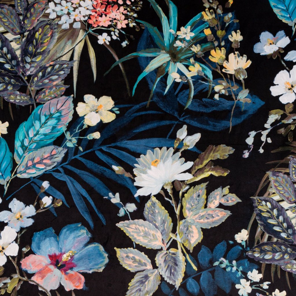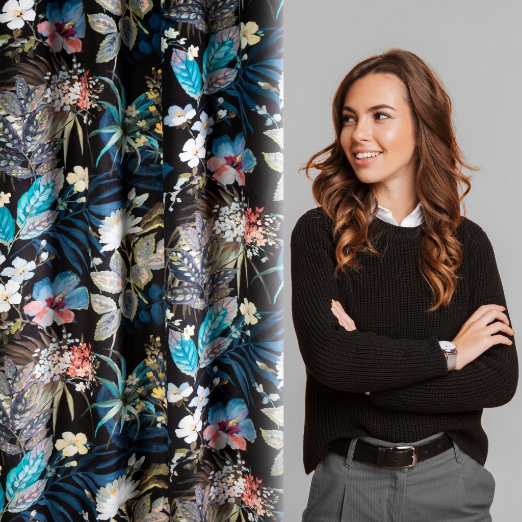 Zatemňovací, sametový závěs s botanickým motivem, barva: vícebarevná, gramáž: 200 GSM, složení: 100% polyester.Doplňkové parametry