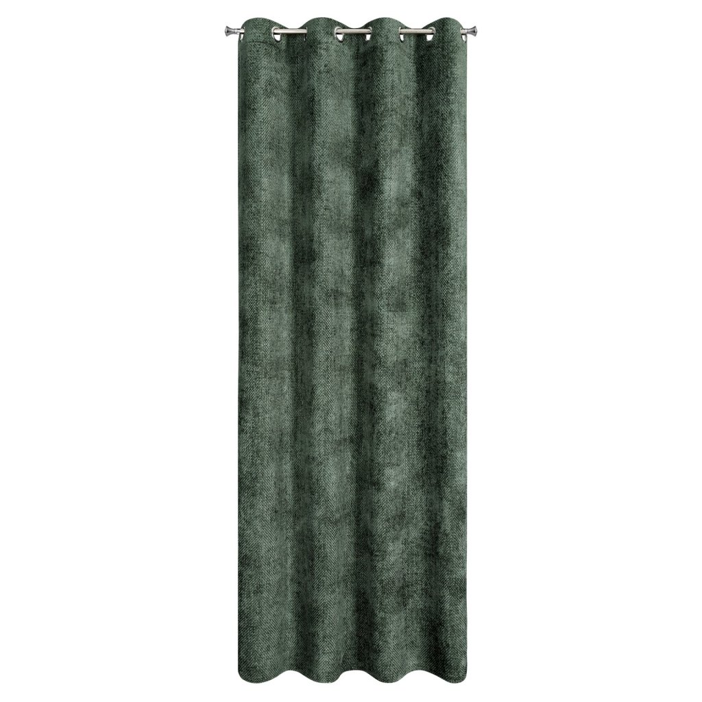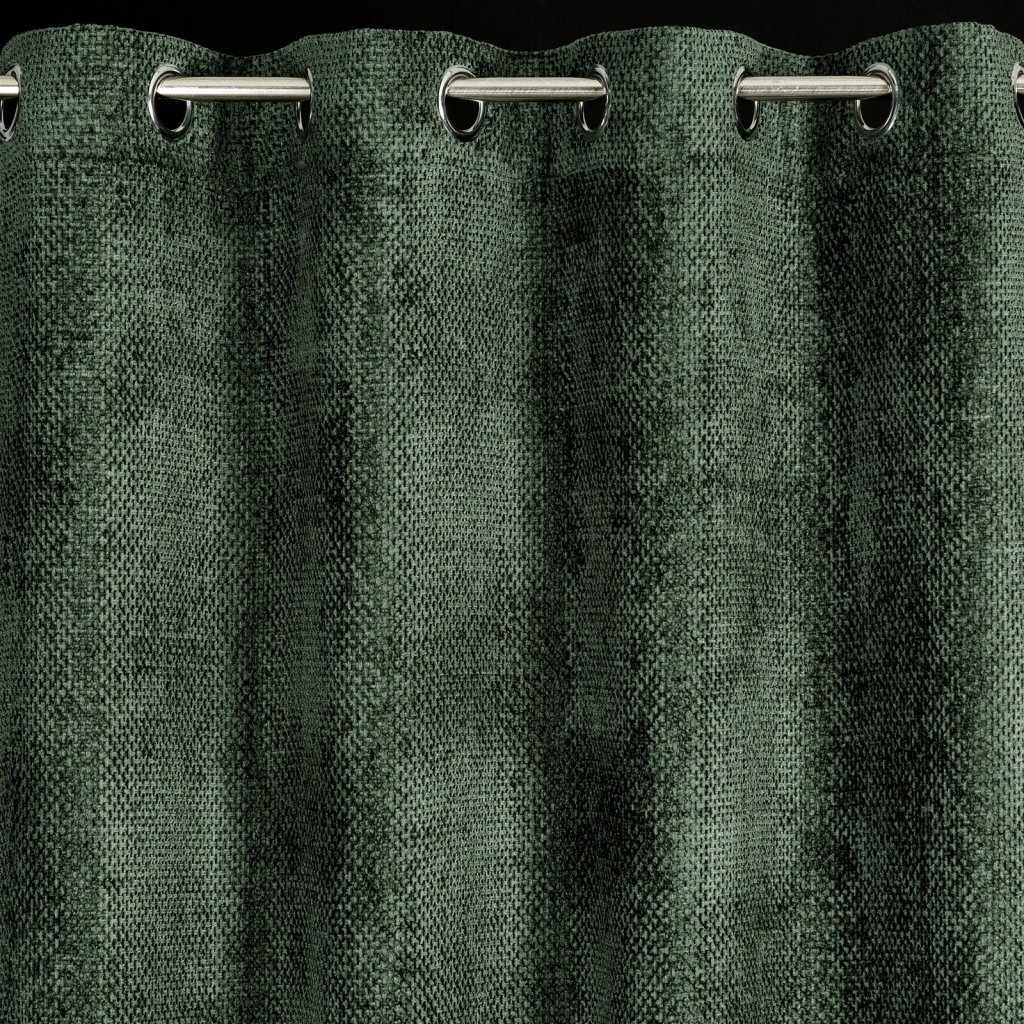 Konfekční závěs z žinylkové látky, šířka: 135 cm, délka: 250 cm, barva: tmavě zelená, hmotnost: 280 GSM, složení: 100% polyester.Doplňkové parametry