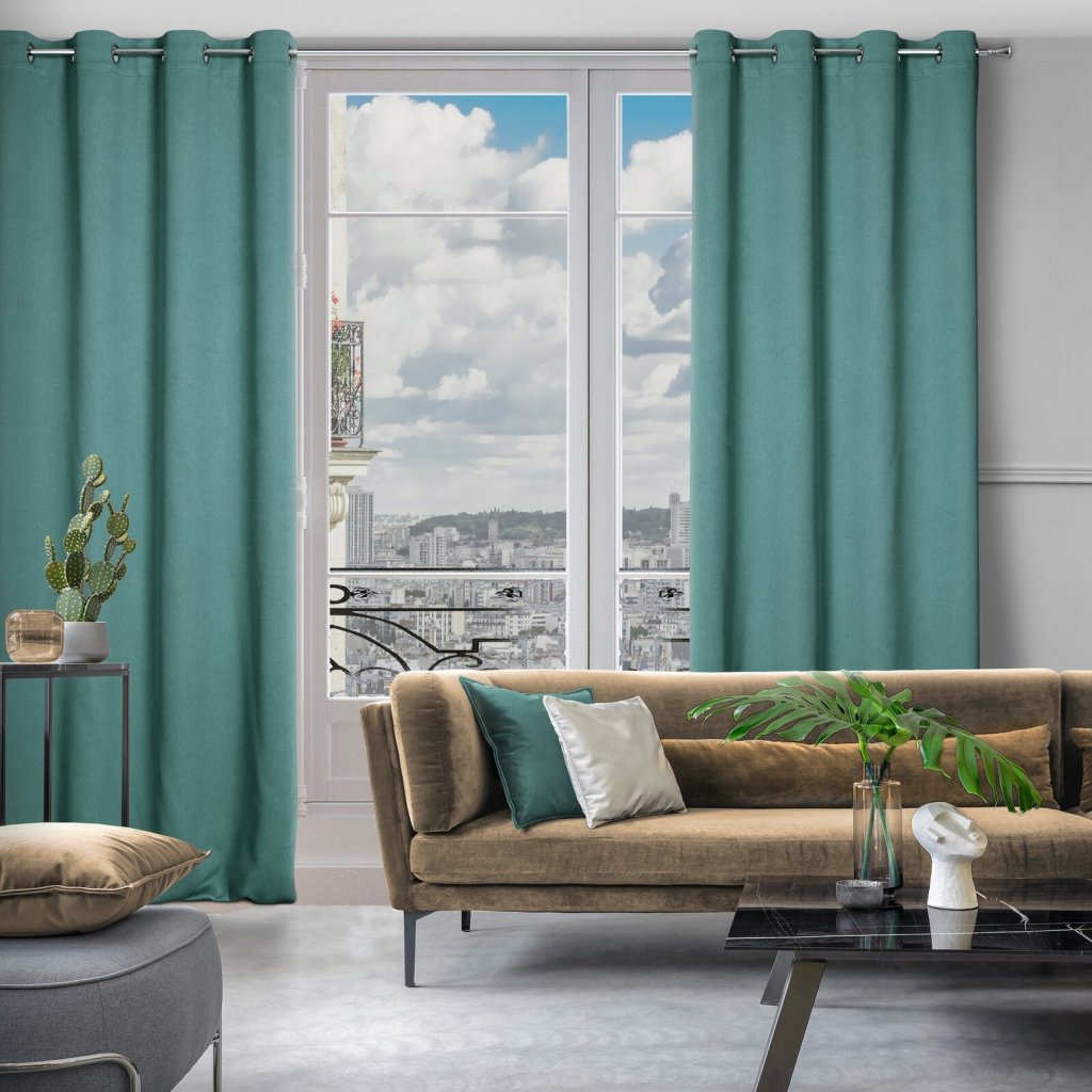 Blackout zatemňovací jednobarevný strukturovaný závěs šířka: 140 cm, délka: 250 cm, barva: tmavě tyrkysová, hmotnost: 340 GSM, složení: 100 % polyesterDoplňkové parametry