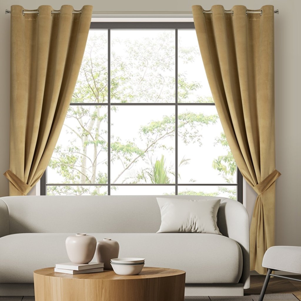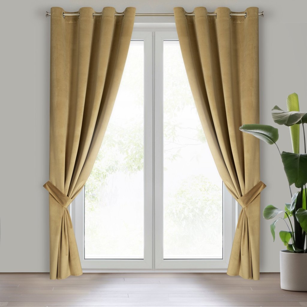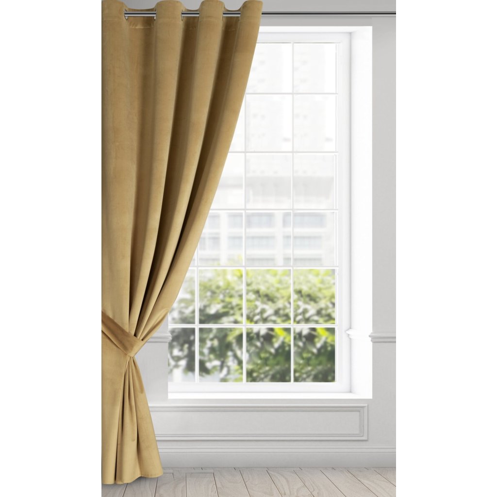 Jednobarevný sametový závěs se šňůrkou, šířka: 140 cm, délka: 270 cm, barva: tmavobéžová, hmotnost: 200 GSM, složení: 100% polyester.Doplňkové parametry