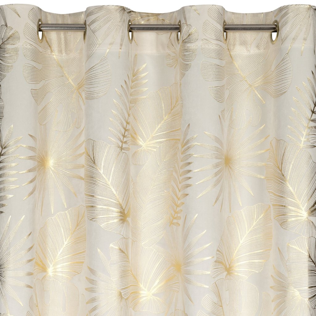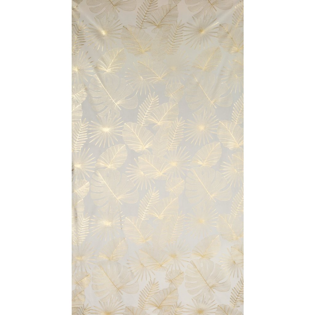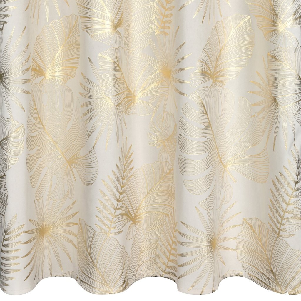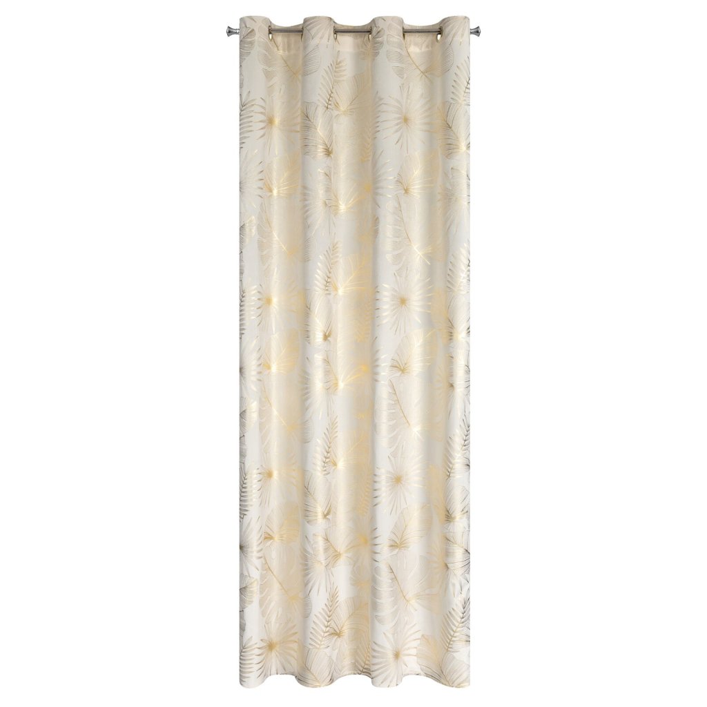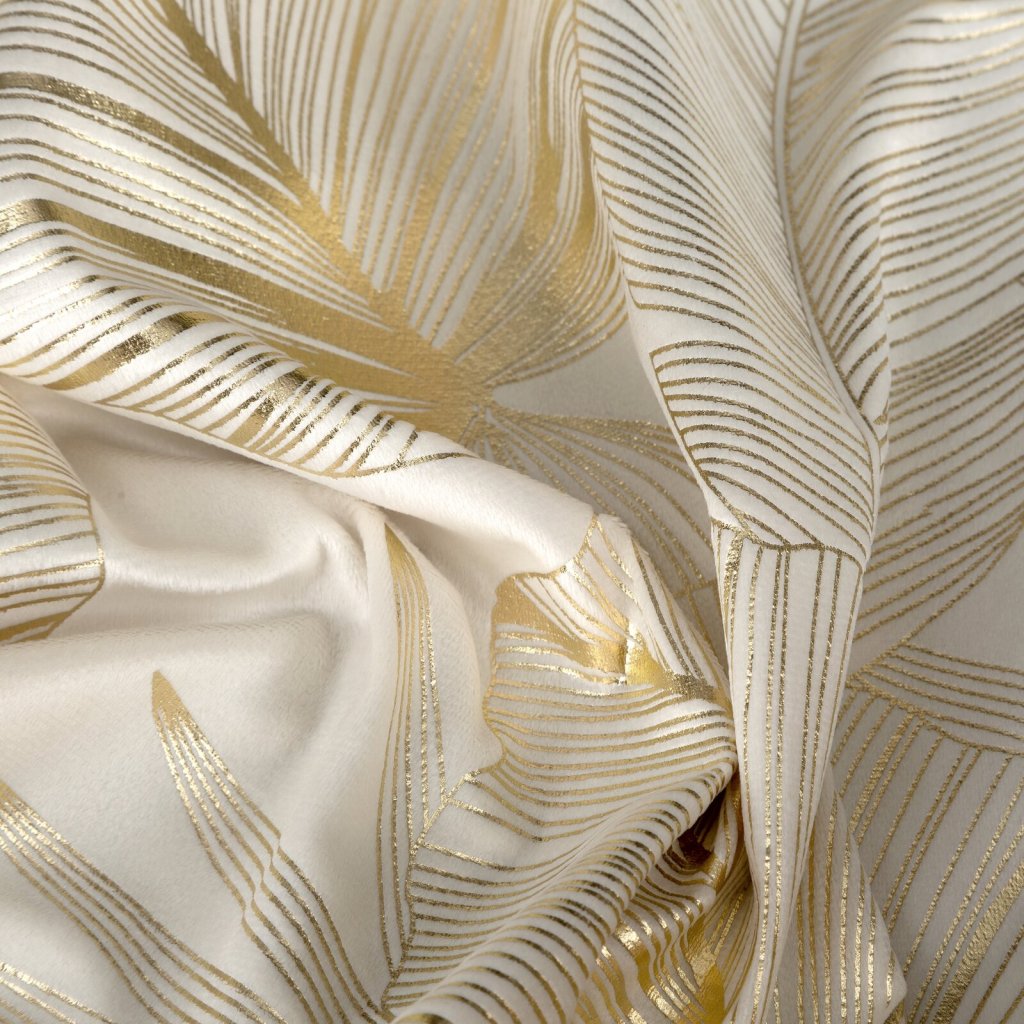 Závěs ARIA z jemné sametové látky s motivem listů s na dotek příjemnou sametovou látkou. Módní botanický vzor se na světle krásně leskne díky zlatému potisku. Šířka: 135 cm, délka: 250 cm, barva: krémová a zlatá, hmotnost: 200 GSM, složení: 100% polyester.Doplňkové parametry