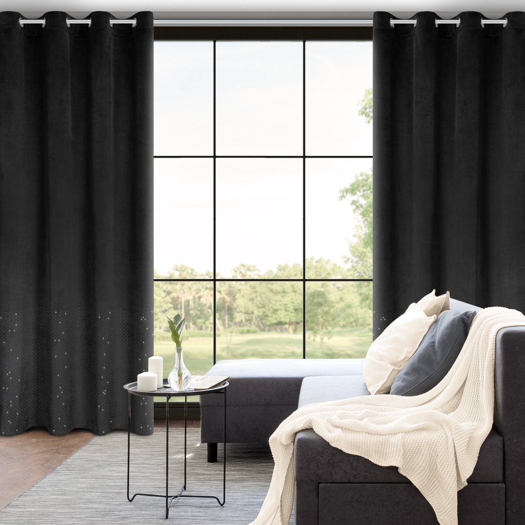 Hotový sametový závěs zdobený kamínky, šířka: 140 cm, délka: 250 cm, barva: černá, gramáž: 200 GSM, složení: 100% polyester.Doplňkové parametry