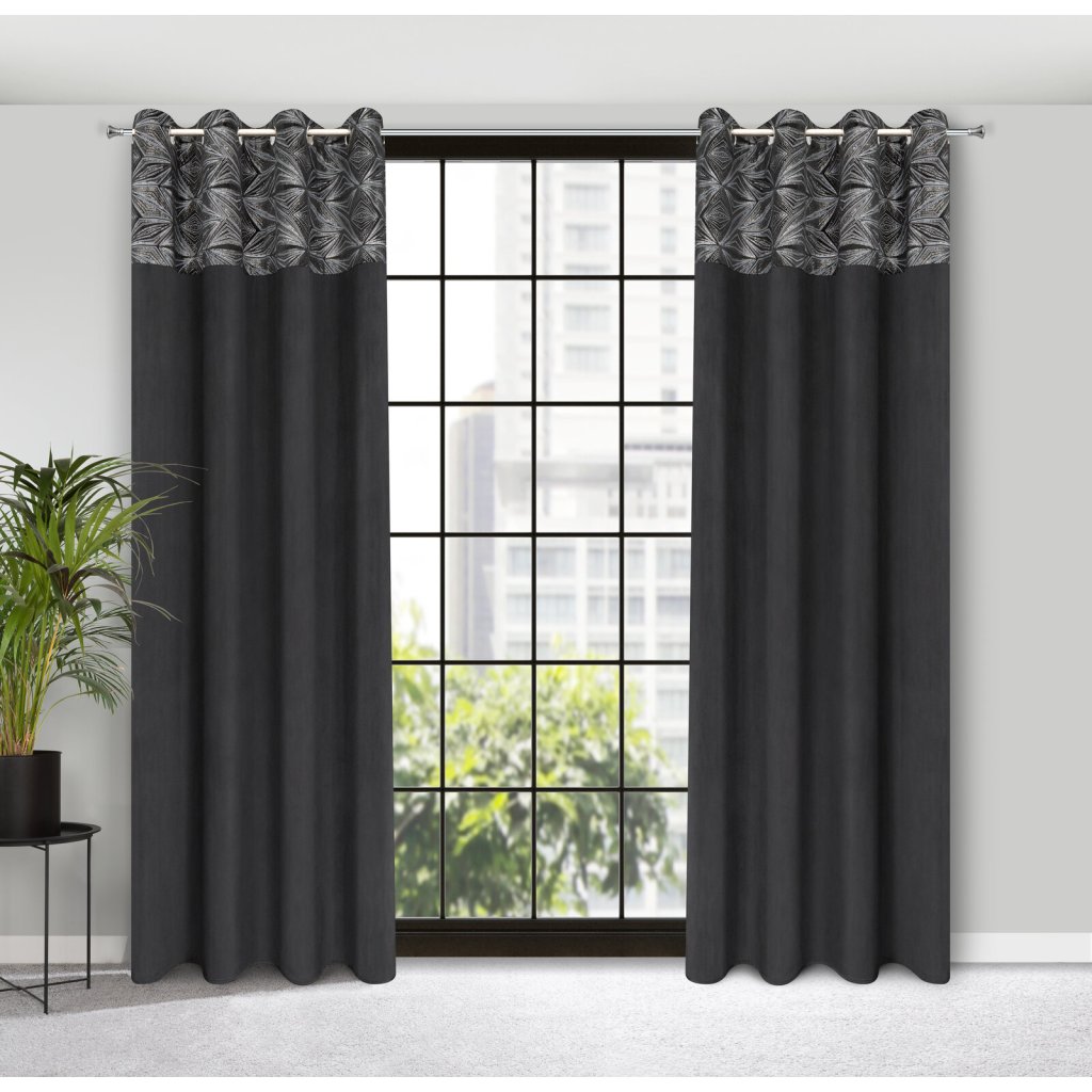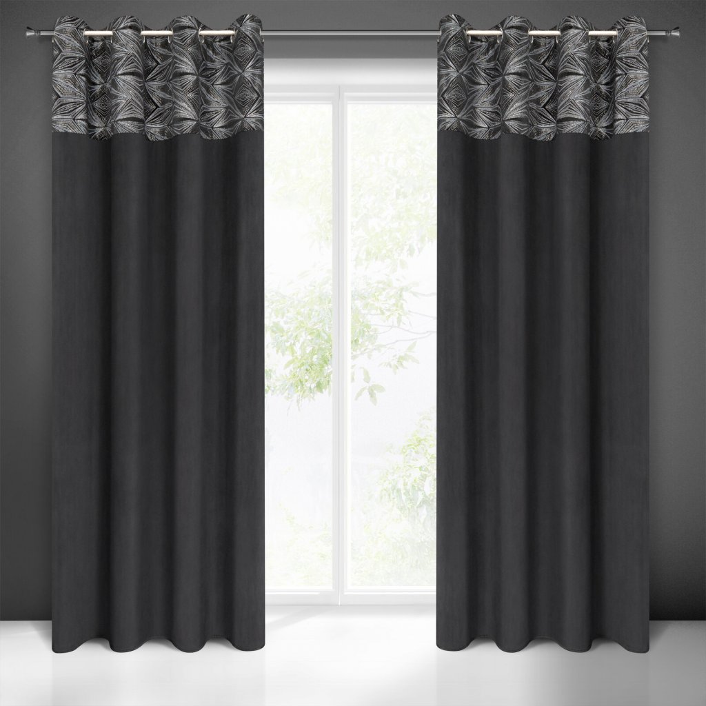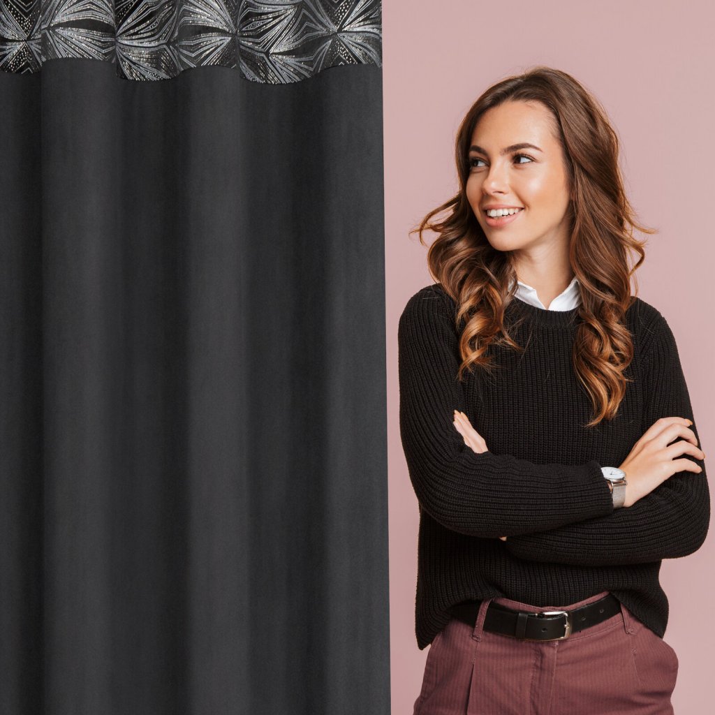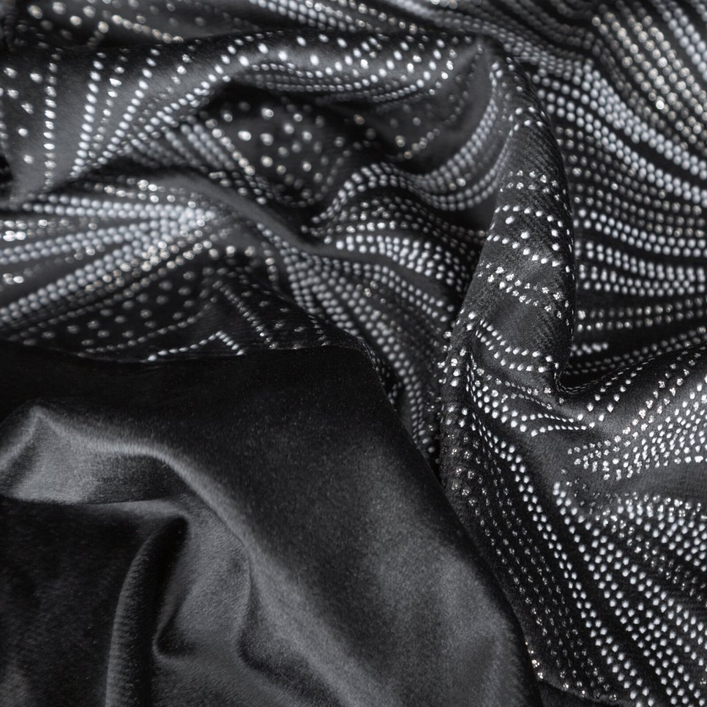Sametový závěs se stříbrným potiskem, šířka: 140 cm, délka: 250 cm, barva: černá, hmotnost: 200 GSM, složení: 100% polyester.Doplňkové parametry