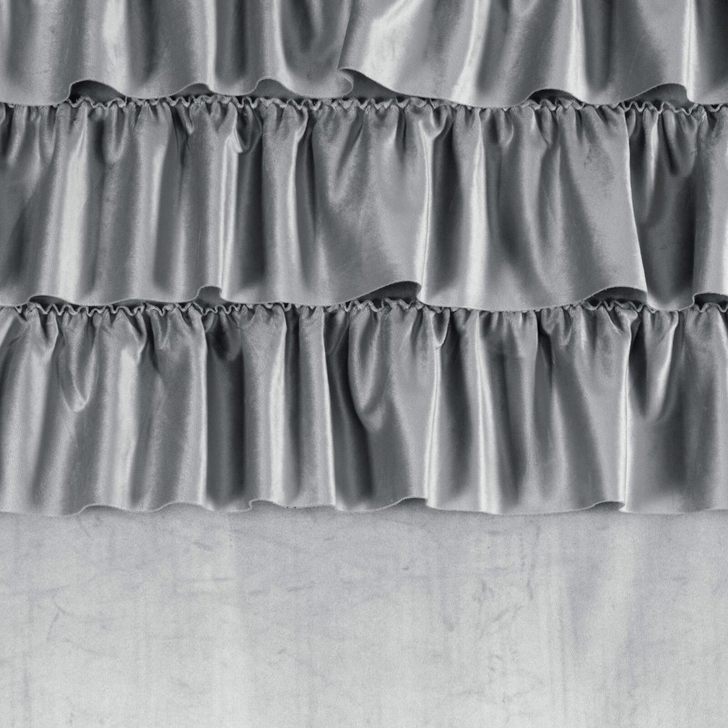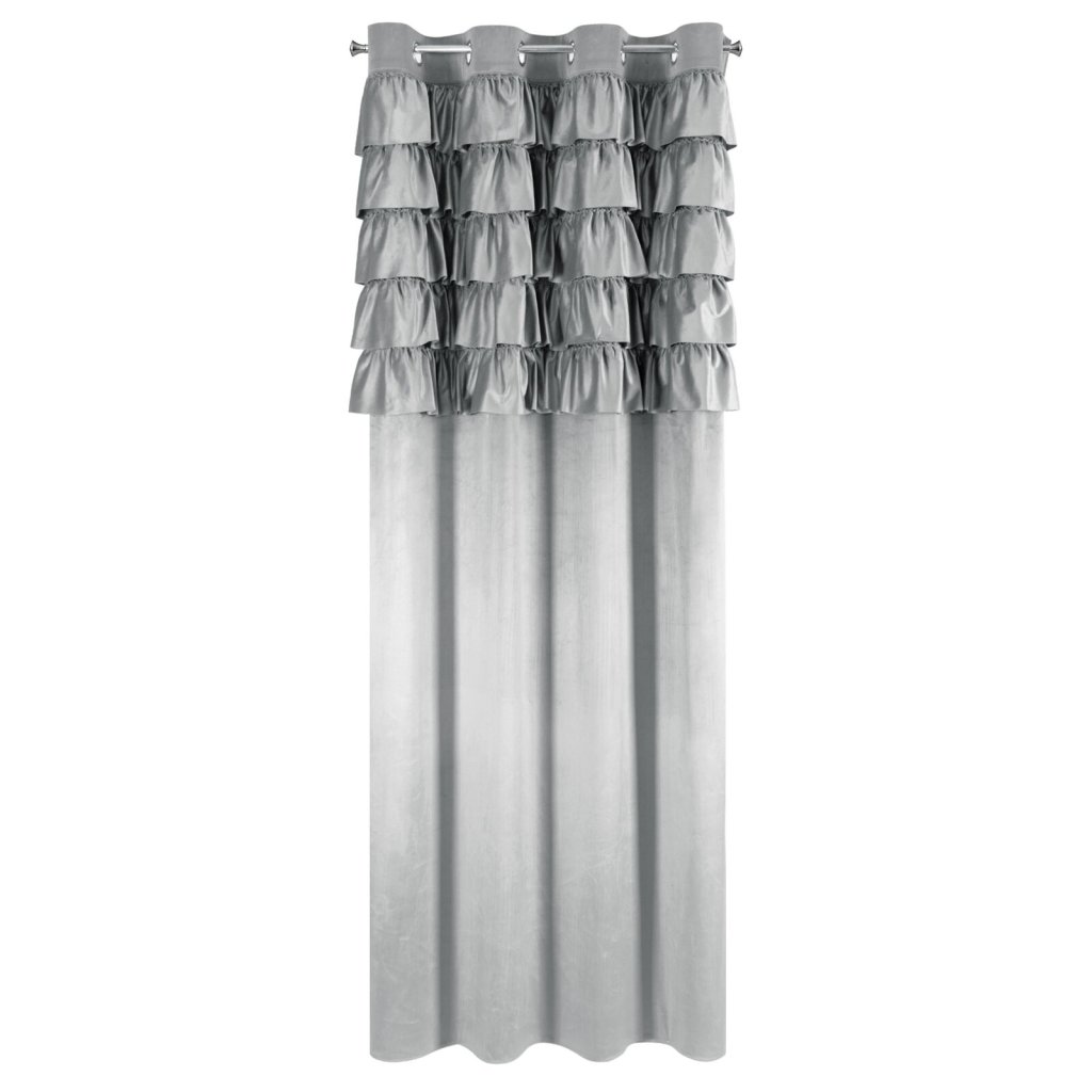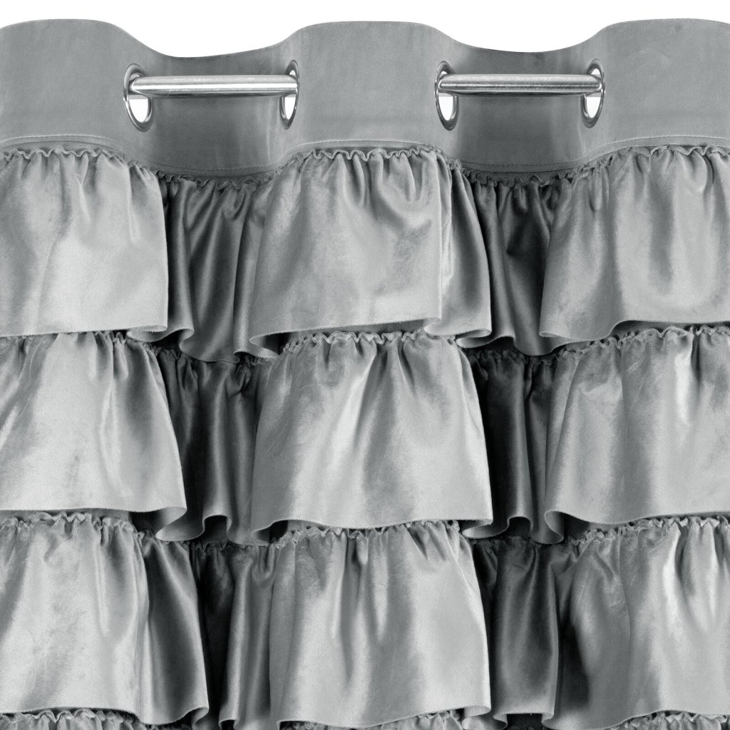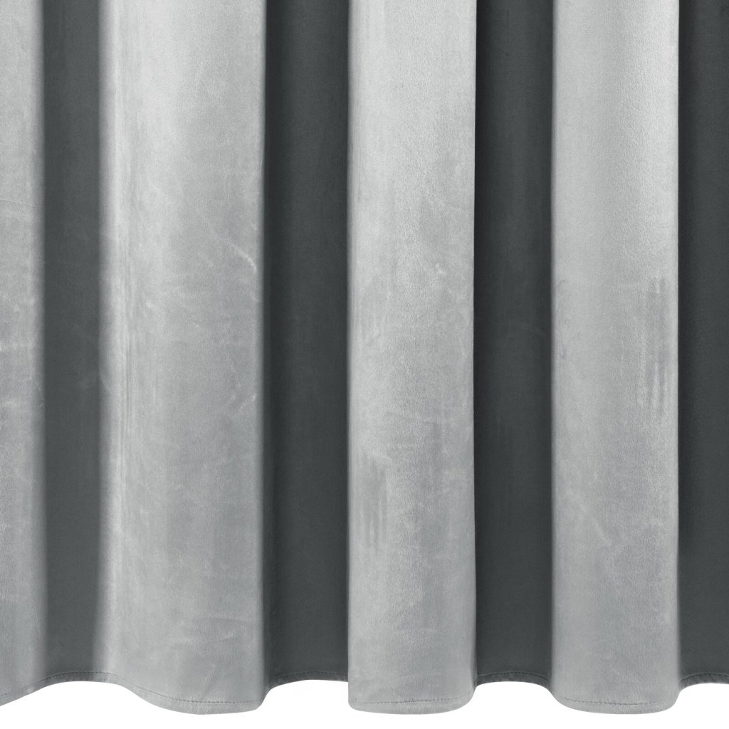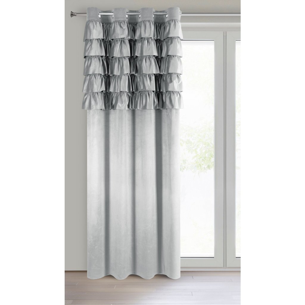 Hotový sametový závěs s volánky v horní části, šířka: 140 cm, délka: 250 cm, barva: stříbrná, hmotnost: 200 GSM, složení: 100% polyester.Doplňkové parametry
