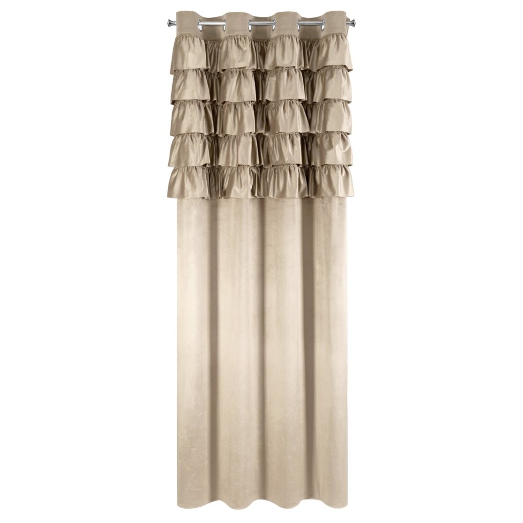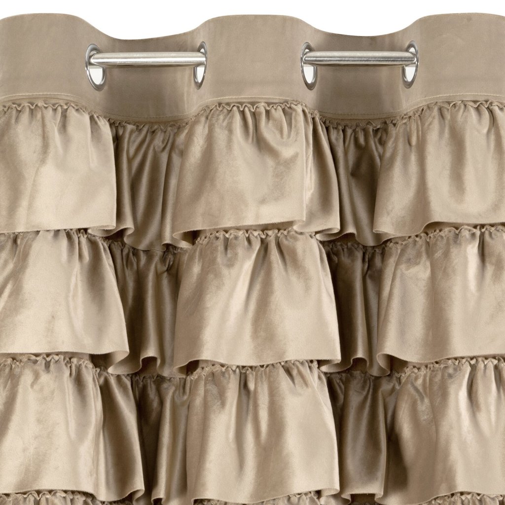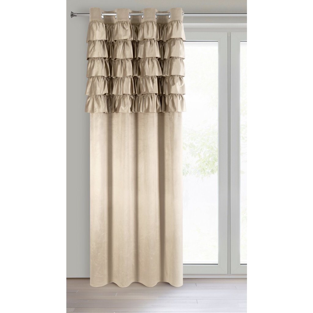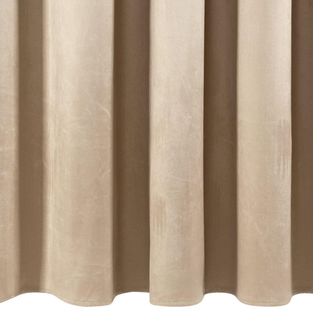 Hotový sametový závěs s volánky v horní části, šířka: 140 cm, délka: 250 cm, barva: tmavě béžová, hmotnost: 200 GSM, složení: 100% polyester.Doplňkové parametry