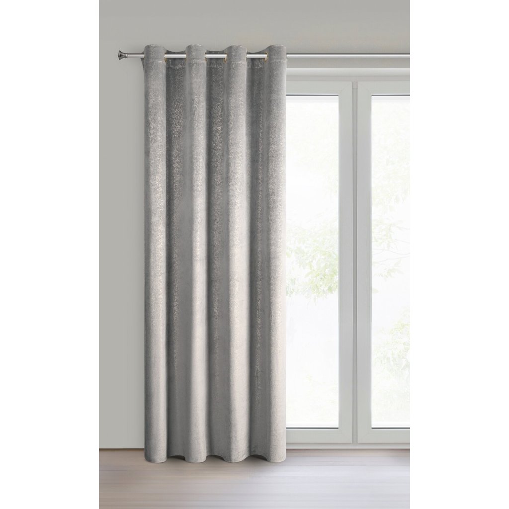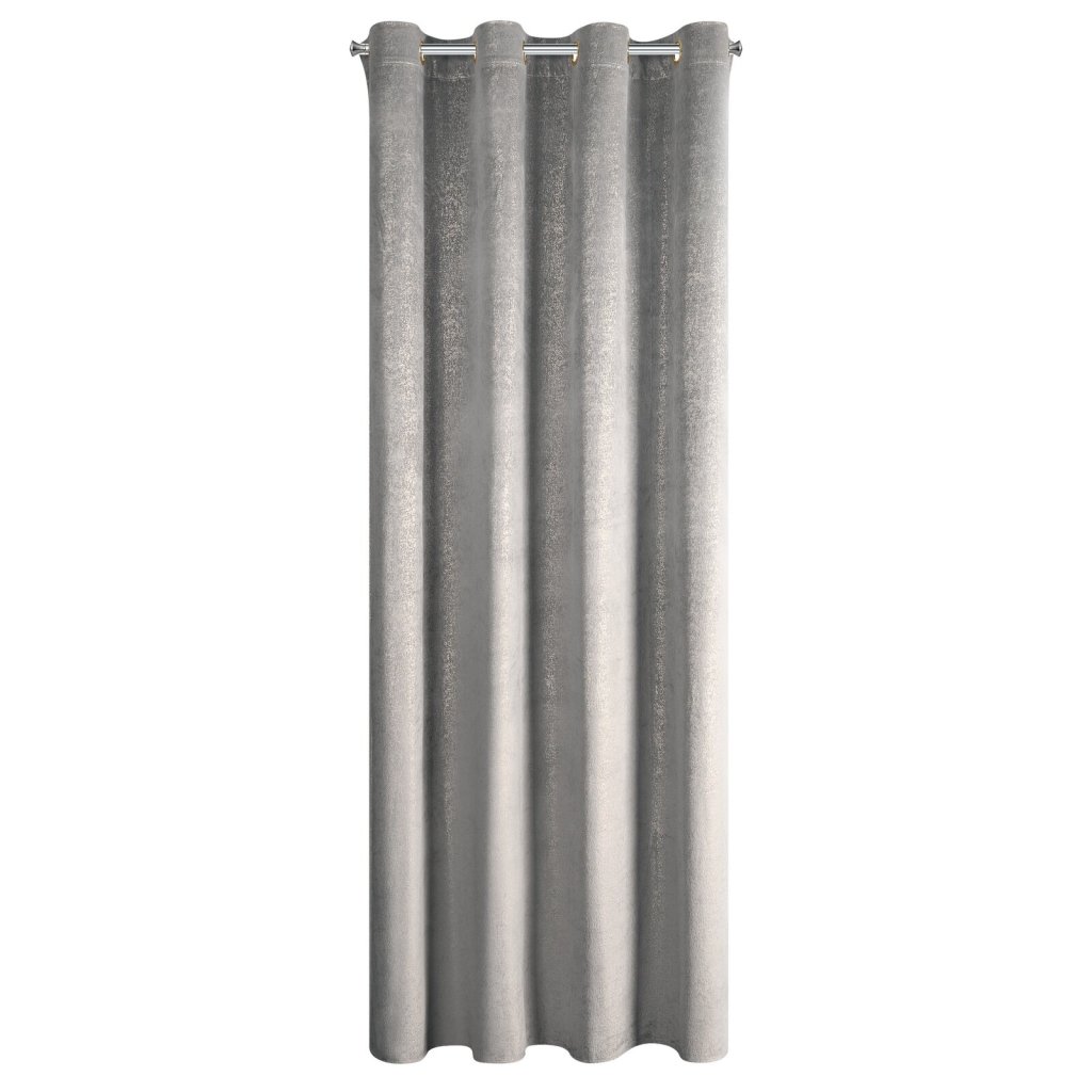 Elegantní sametový závěs BETHY ve stříbrné barvě s jemným lesklým vzorem dodá interiéru moderní nádech. Lesklý potisk ve zlaté barvě krásně odráží světlo, čímž vytváří sofistikovaný efekt a oživuje prostor. Šířka: 135 cm, délka: 250 cm, barva: stříbrná a zlatá, hmotnost: 200 GSM, složení: 100% polyester.Doplňkové parametry