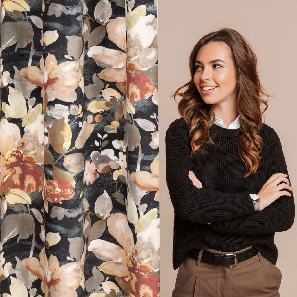 Sametový závěs s květinovým potiskem, šířka: 140 cm, délka: 250 cm, barva: vícebarevná, hmotnost: 200 GSM, složení: 100% polyester.Doplňkové parametry