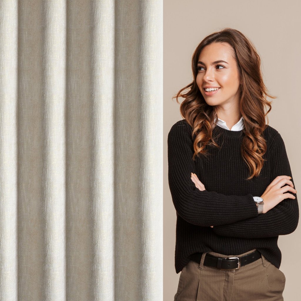 Elegantní závěs BITSY vyrobený z žinylkové látky s jemným melanžovým vzorem. Jemně tkaná třpytivou nití se krásně třpytí ve světle a vytváří v místnosti útulnou a rafinovanou atmosféru. Šířka: 140 cm, délka: 250 cm, barva: šampaňská, hmotnost: 280 GSM, složení: 70% polyester, 30% viskóza.Doplňkové parametry