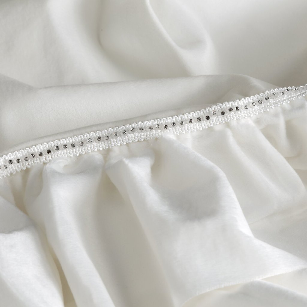 Hotový sametový závěs s volánky a ozdobnými kamínky, šířka: 140 cm, délka: 250 cm, barva: bílá, hmotnost: 200 GSM, složení: 100% polyester.Doplňkové parametry